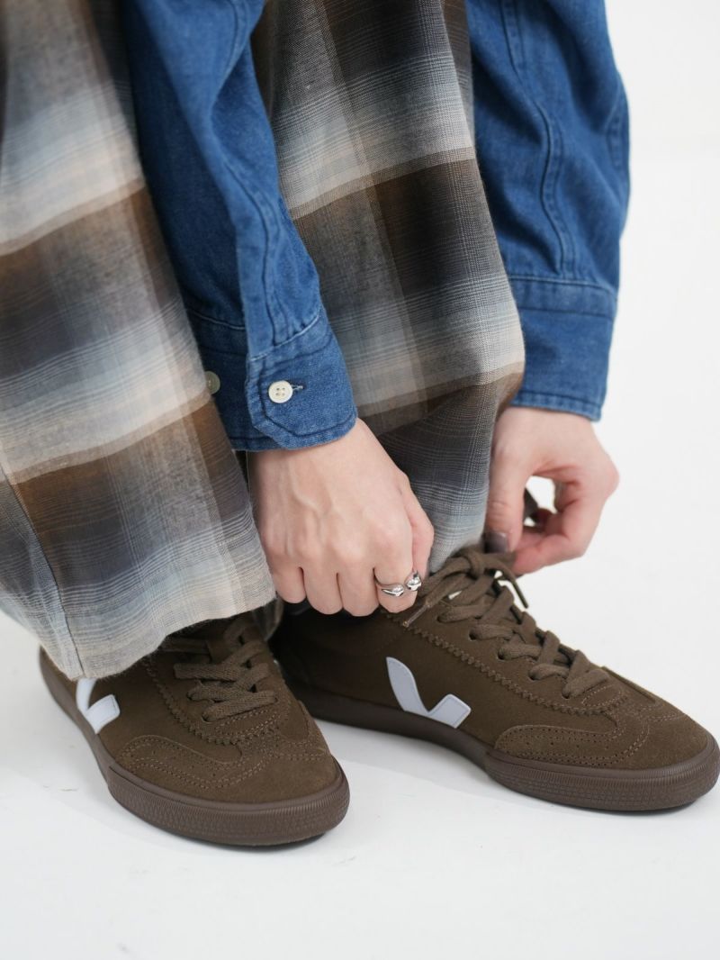 【 VEJA / ベジャ 】 フランス発のサステナブルブランド。 フェアトレードによるオーガニックコットンや天然ラバー、リサイクルされた素材やペットボトルを再生した生地を使うなど、 物づくりの抱える大きな問題に真剣に向き合い、新しい取り組みでファッショナブルなシューズを生産しています。