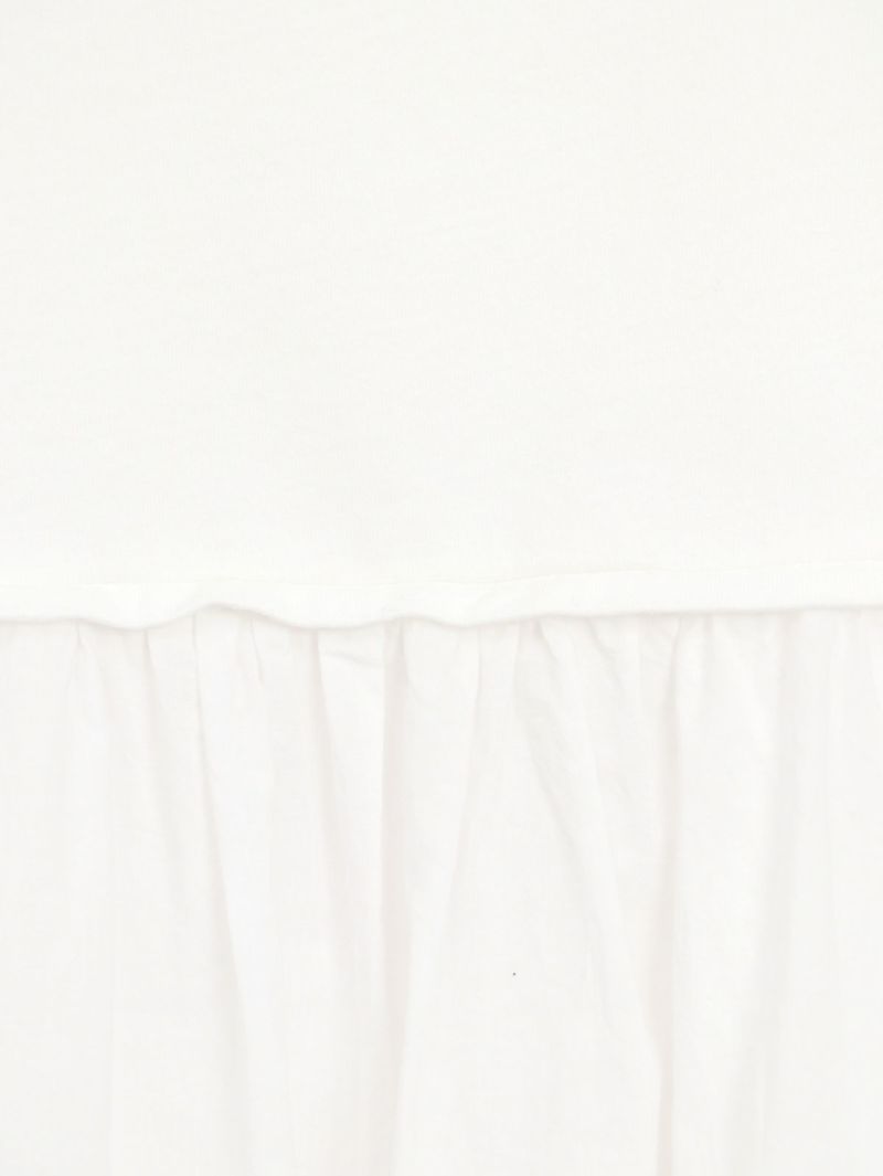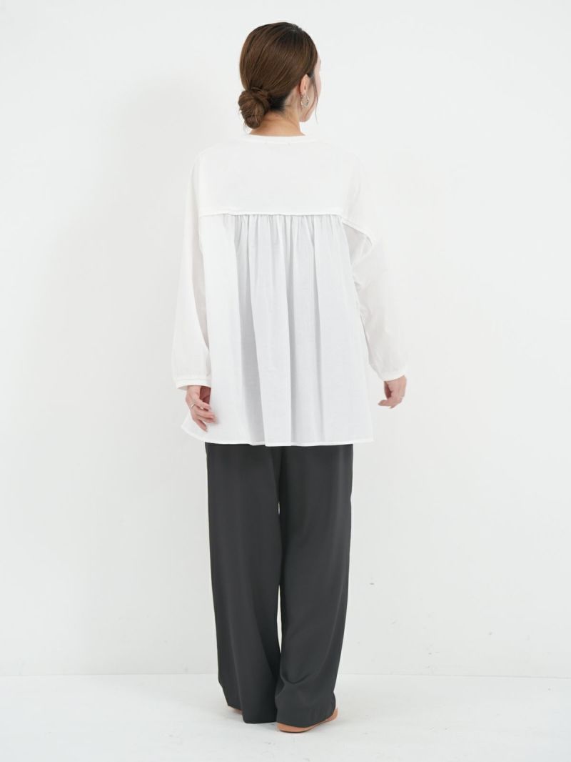 天竺カットソー素材とソフトなローン布帛地を組み合わせた、軽い着心地のコンビプルオーバー。 ゆったりとしたシルエットでボリュームがありながらも、野暮ったくならずに着用出来る1枚。袖口はリブ仕様で腕をまくってもずり落ちにくく、軽やかなに着こなして頂けます。