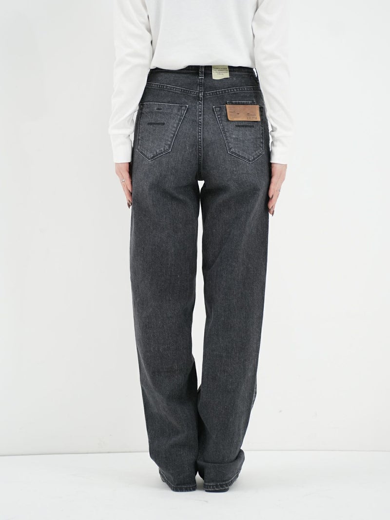 美脚シルエットが叶うストレートデニム「LILITH(リリス)」。 腰まわりをすっきり見せるパターン設計で、気になる部分を自然にカバー。ヒップ位置を高く見せるバックスタイルで、後ろ姿まできれいに見せてくれます。柔らかさとハリ感を兼ね備えたストレッチデニムは、快適な穿き心地と美しいラインを両立。かすんだようなフェードグレーが上品な印象を添え、ほどよいUSED感でどんなスタイルにも馴染む一本です。