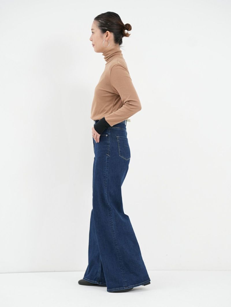 脚長効果が叶うフレアデニム。 腰まわりをすっきりとフィットさせ、裾に向かってゆるやかに広がる美しいシルエット。ボリューム感がありながらもだらしなく見えず、上品に穿ける一本です。ヒールとの相性も抜群で、スタイルアップを叶えるバランス設計。柔らかさとハリを兼ね備えたYANUK定番のストレッチデニムで、快適な穿き心地と美しいラインを両立。スリヒゲのないマットな加工がレトロな雰囲気を漂わせ、カジュアルにもモードにも馴染む、シーズンレスで活躍する万能デニムです。