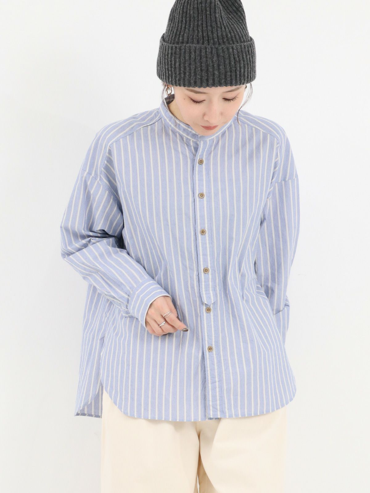 [ Dana Faneuil / ダナファヌル ] ストライプバンドカラーシャツ