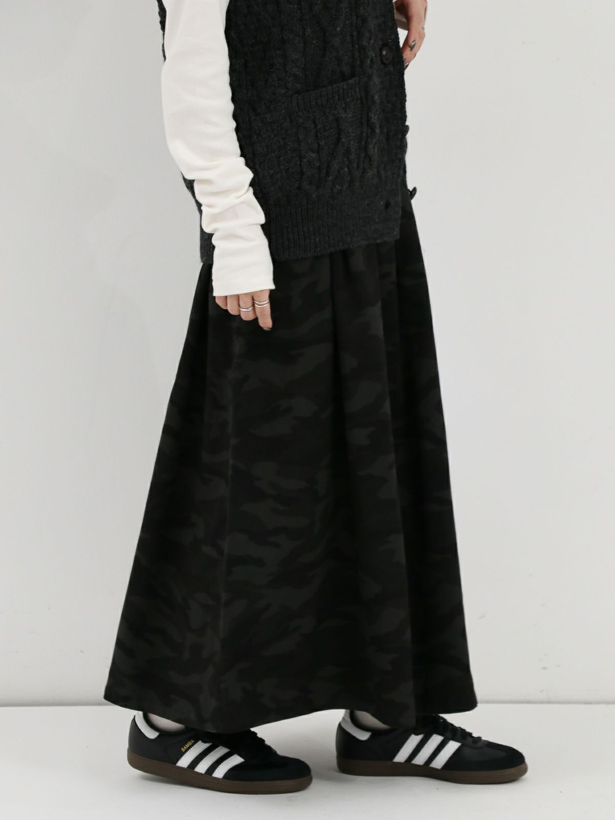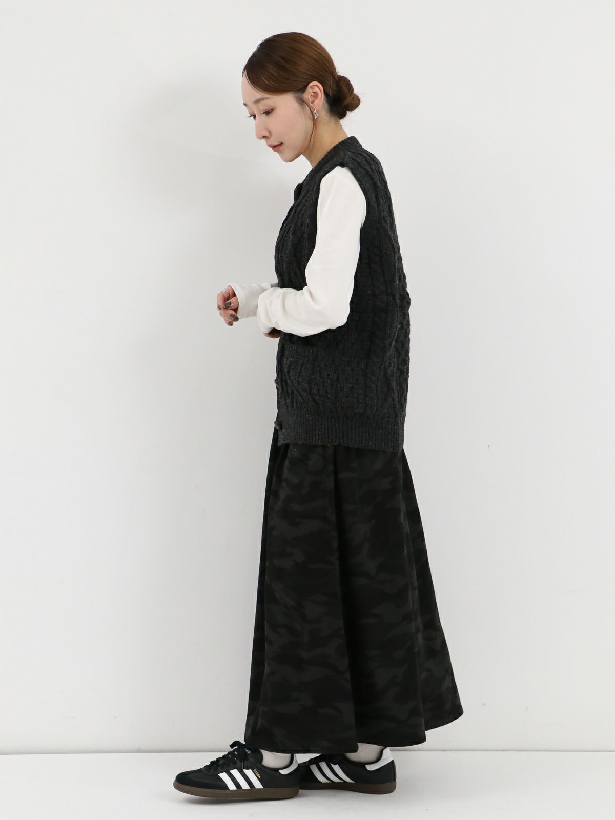 [ vent blanc / ヴァンブラン ] カモフラギャザーロングスカート