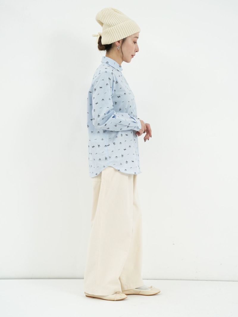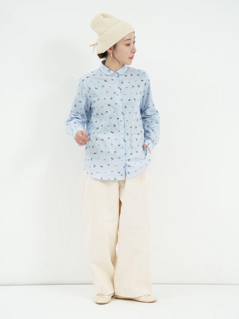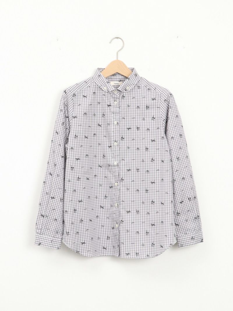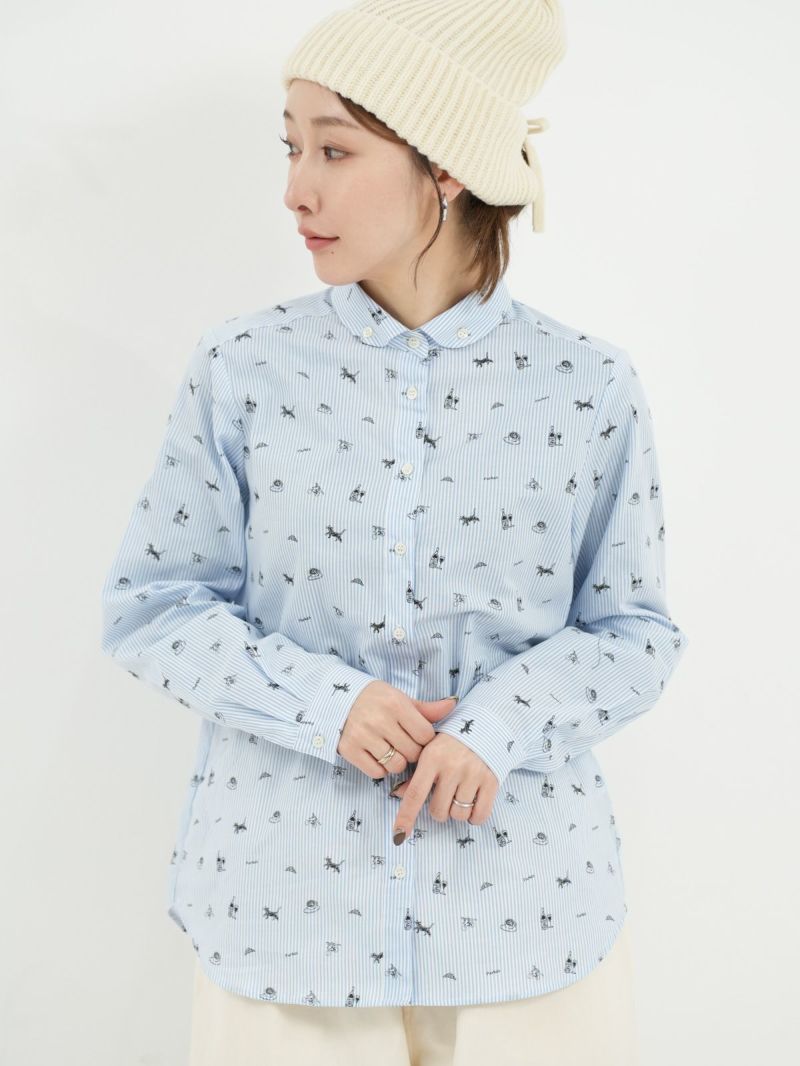 ボタンダウンなのに丸襟の珍しいシャツ。 これからのシーズン、カーディガンやベストのインナーにも。合わせやすい柔らかい素材です。ブルーはストライプ、グレーはギンガムに小さくプリントされた可愛い柄がおすすめのポイントです。