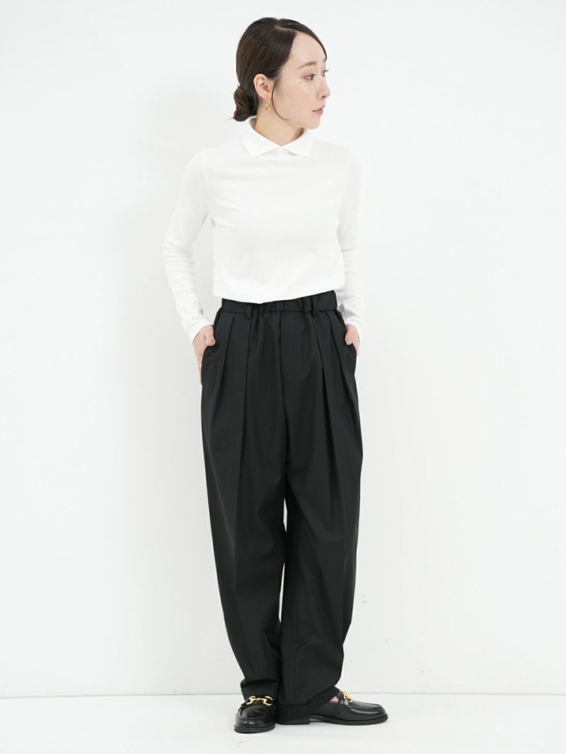 きめ細やかな肌触りの柔らかいフランス製コットン100%のカットソー。 衿の部分は首元に沿うデザインとなっており締め付け感がなく優しくフィットします。レイヤードのインナーとしても◎