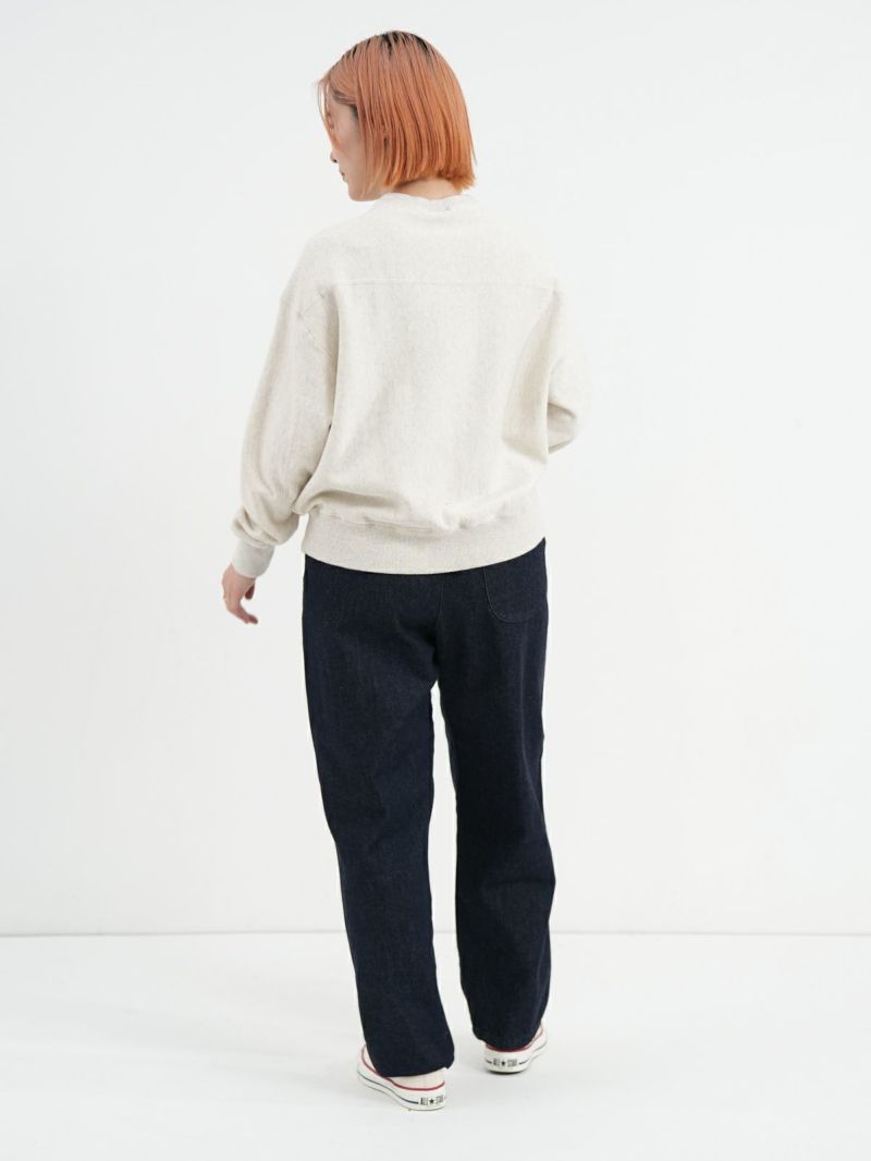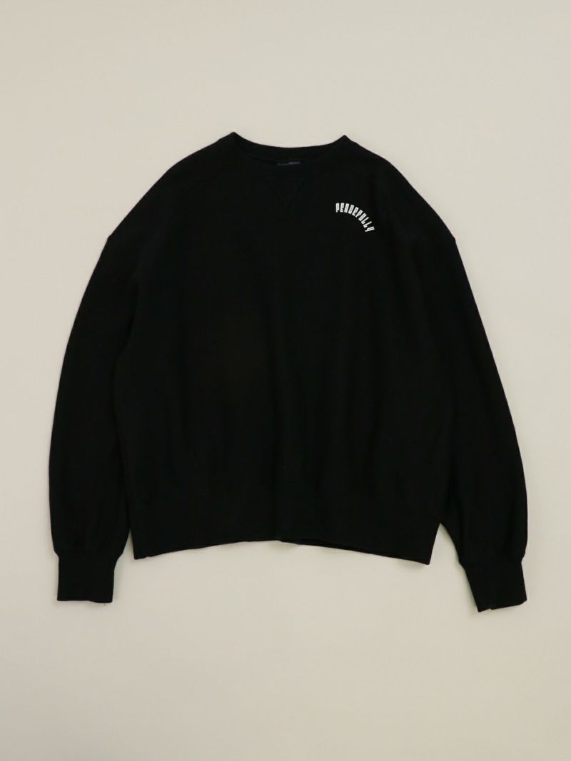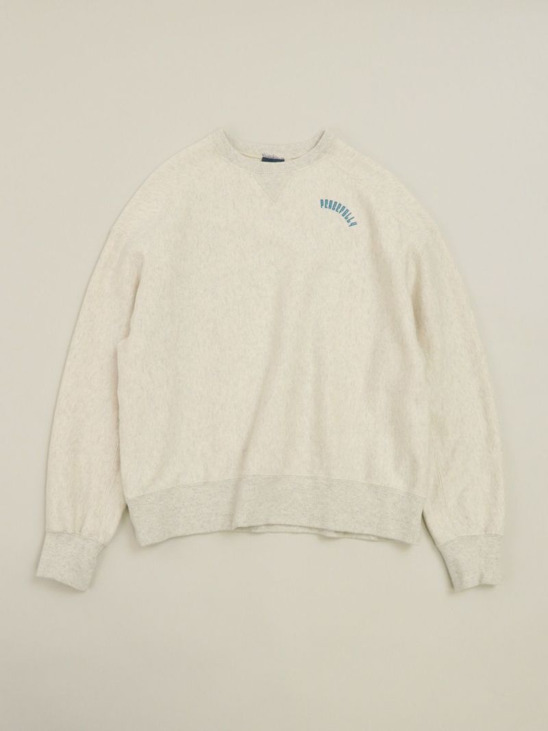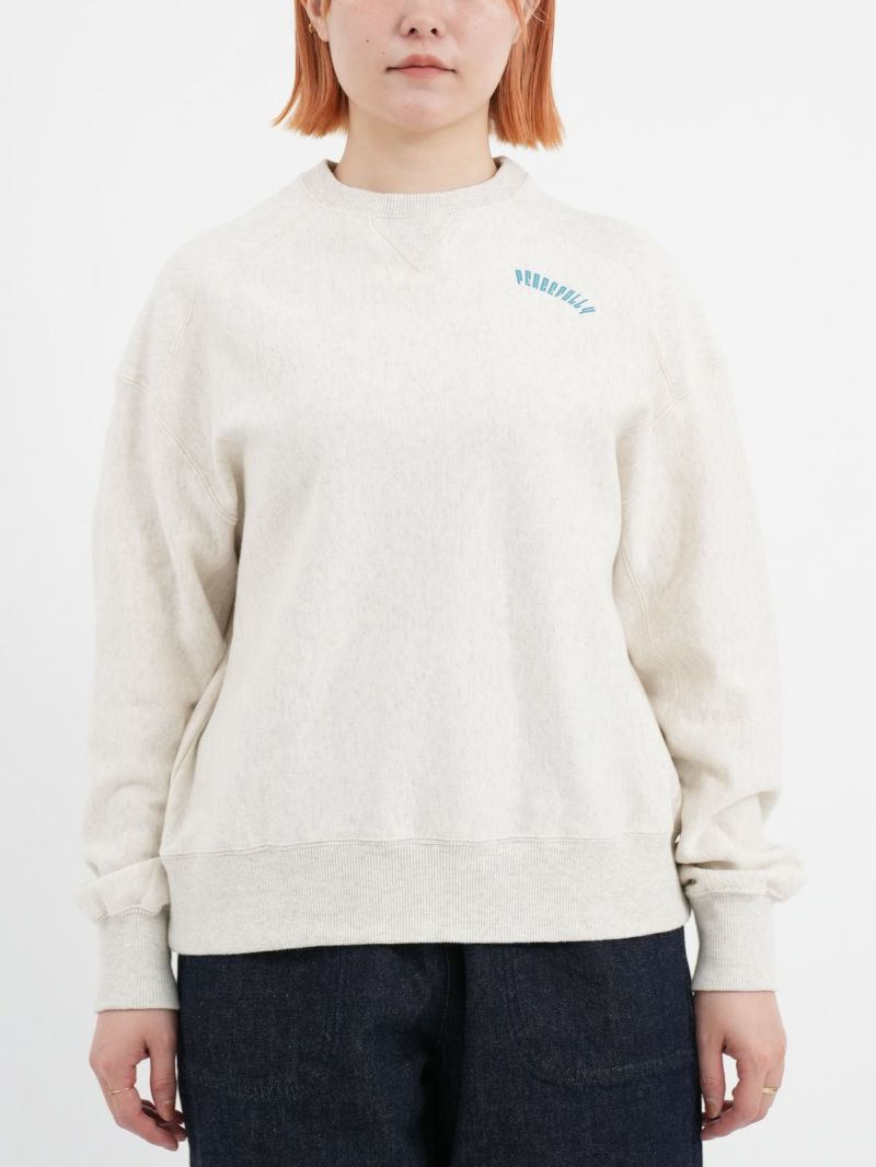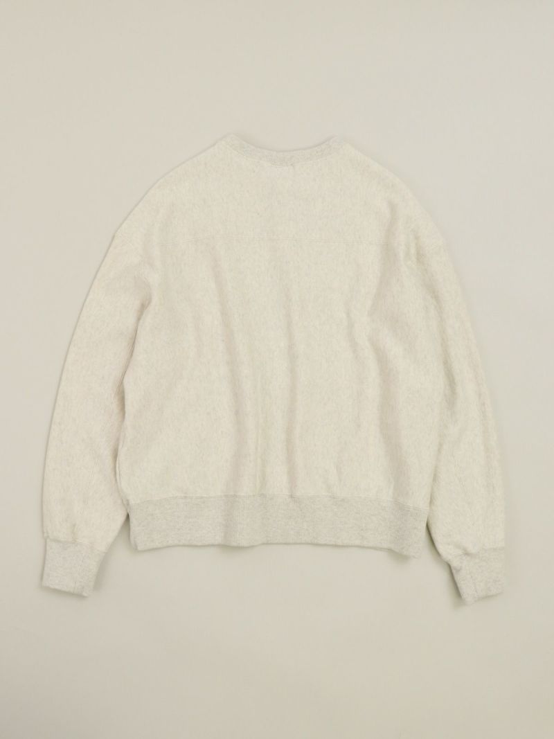 肌触り柔らかなスウェットプルオーバー。 ベビー裏毛で季節の変わり目に程よい生地感です。肩と袖に切り替えがあるのと、胸元のロゴがポイントです。