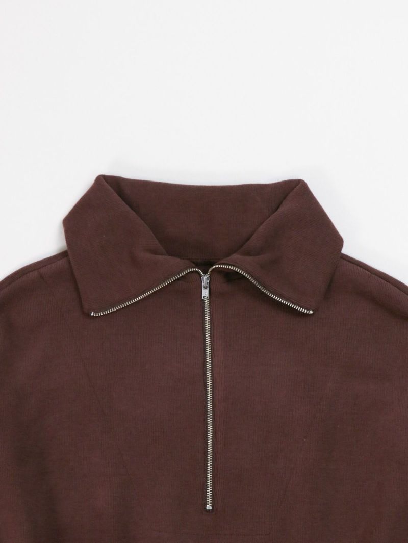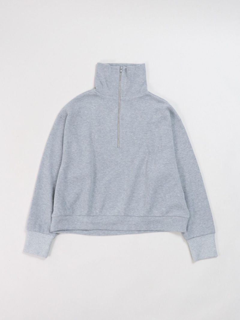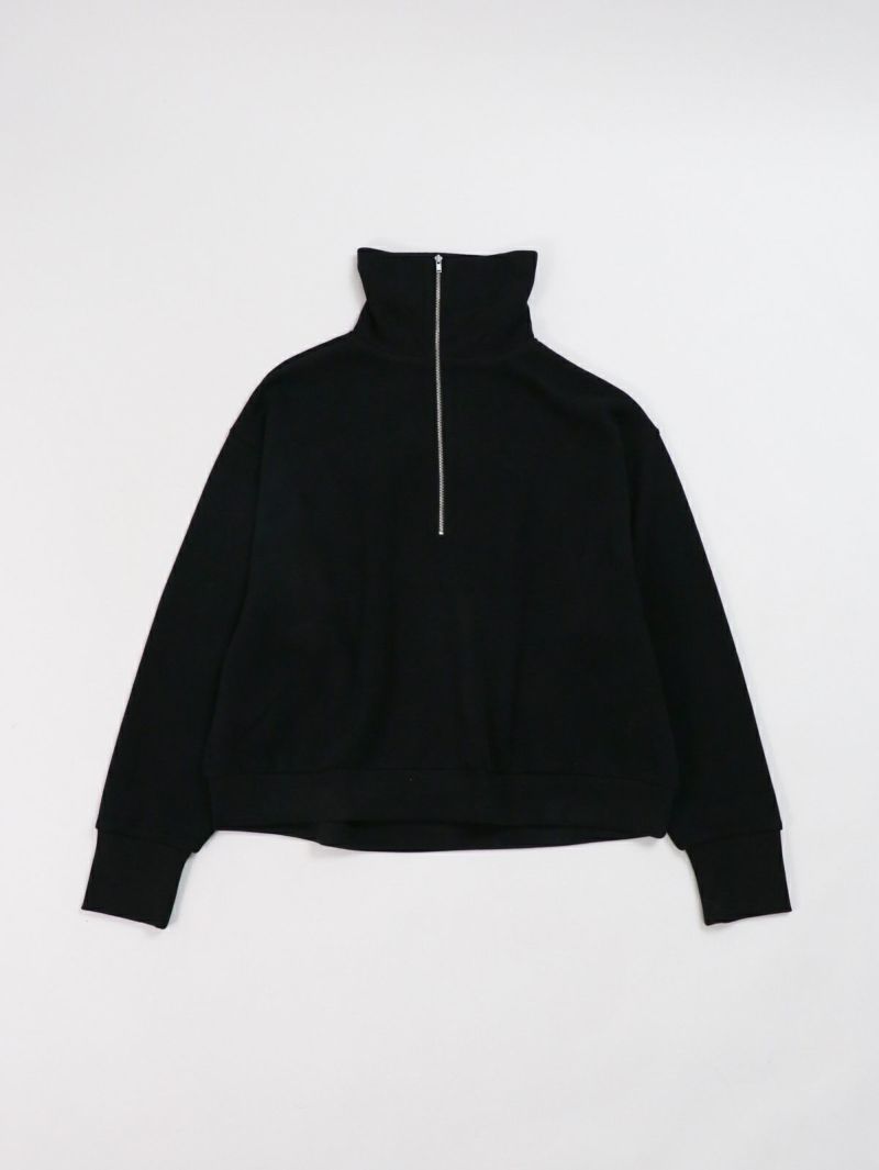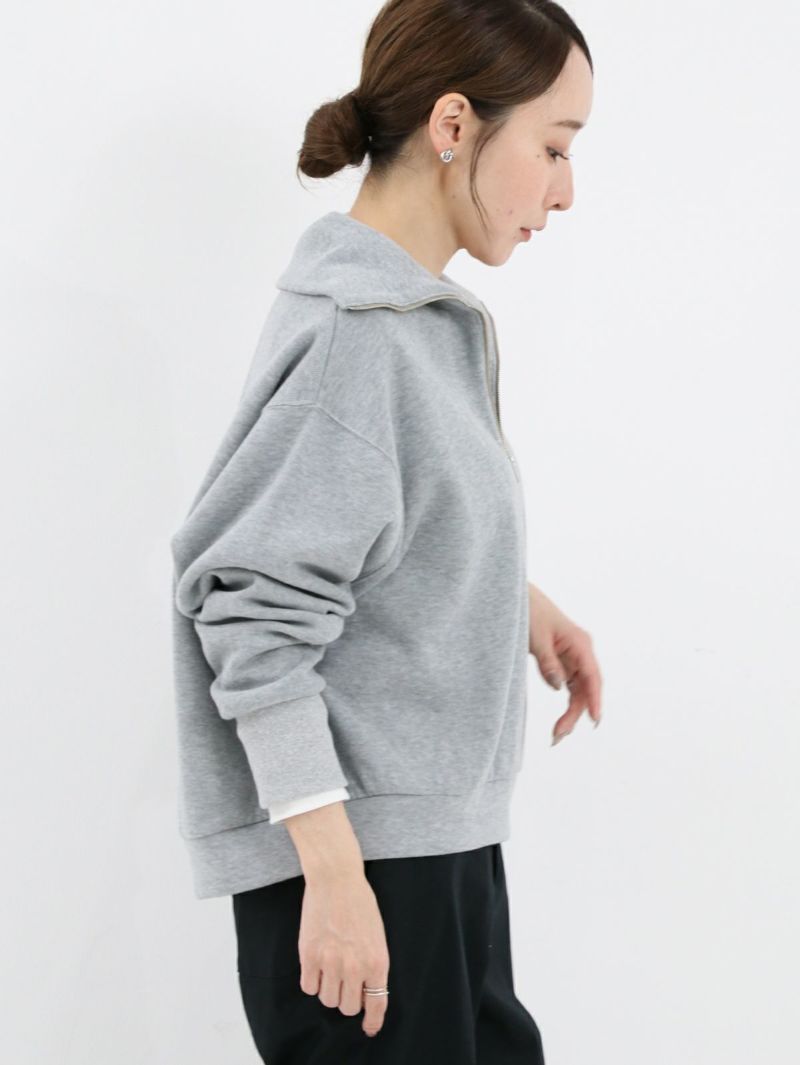 膨らみのあるダブルフェイス生地で仕立てたハーフジッププルオーバー。 適度な厚みで身体のラインを拾わず立体感が出ます。ジップの開け具合で首元のニュアンスの変化を楽しめ、インにシャツやタートルネックなどを合わせたレイヤードスタイルもおすすめです。同素材のスカートとのセットアップ着用も可能。