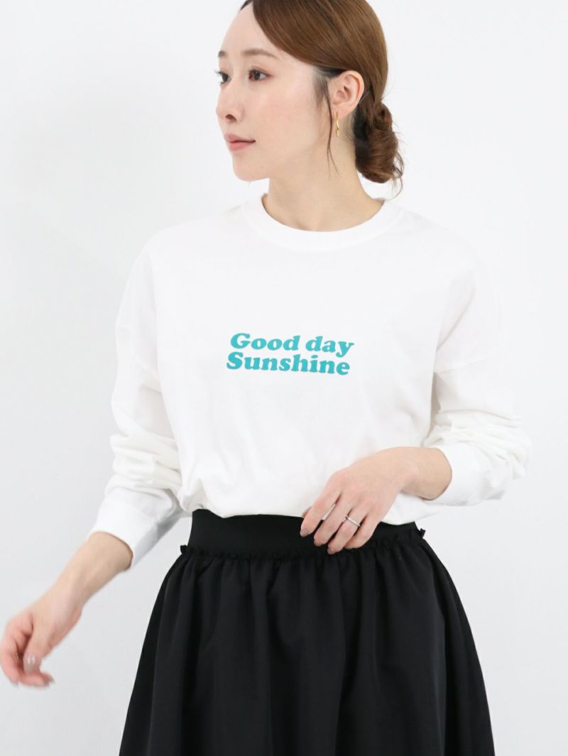 滑らかな肌触りのコットン素材を使用。ベーシックスなシルエットにヴィンテージライクなロゴがポイント♪ Good day Sunshine(良い1日を)。