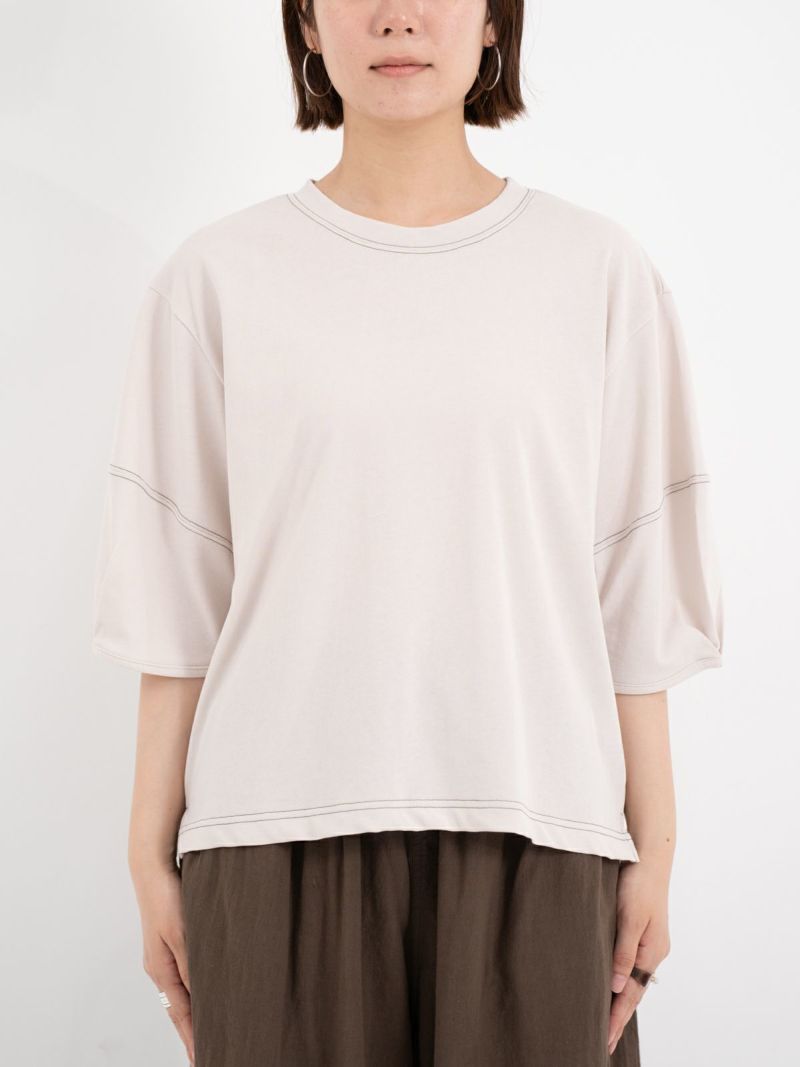 ステッチがポイントのパフスリーブプルオーバー。 立体感のある肉感とシャリ感を兼ね備えた型崩れしにくいカットソー。ヴィンテージのような風合いに加えてナチュラル感のある素材です。