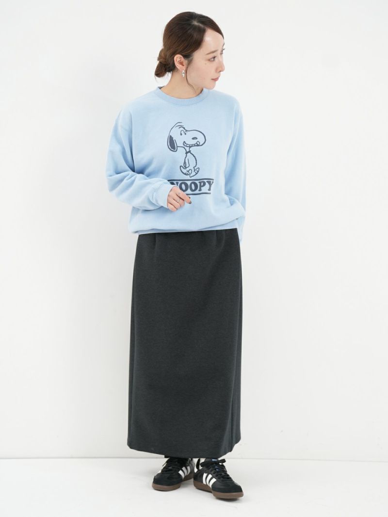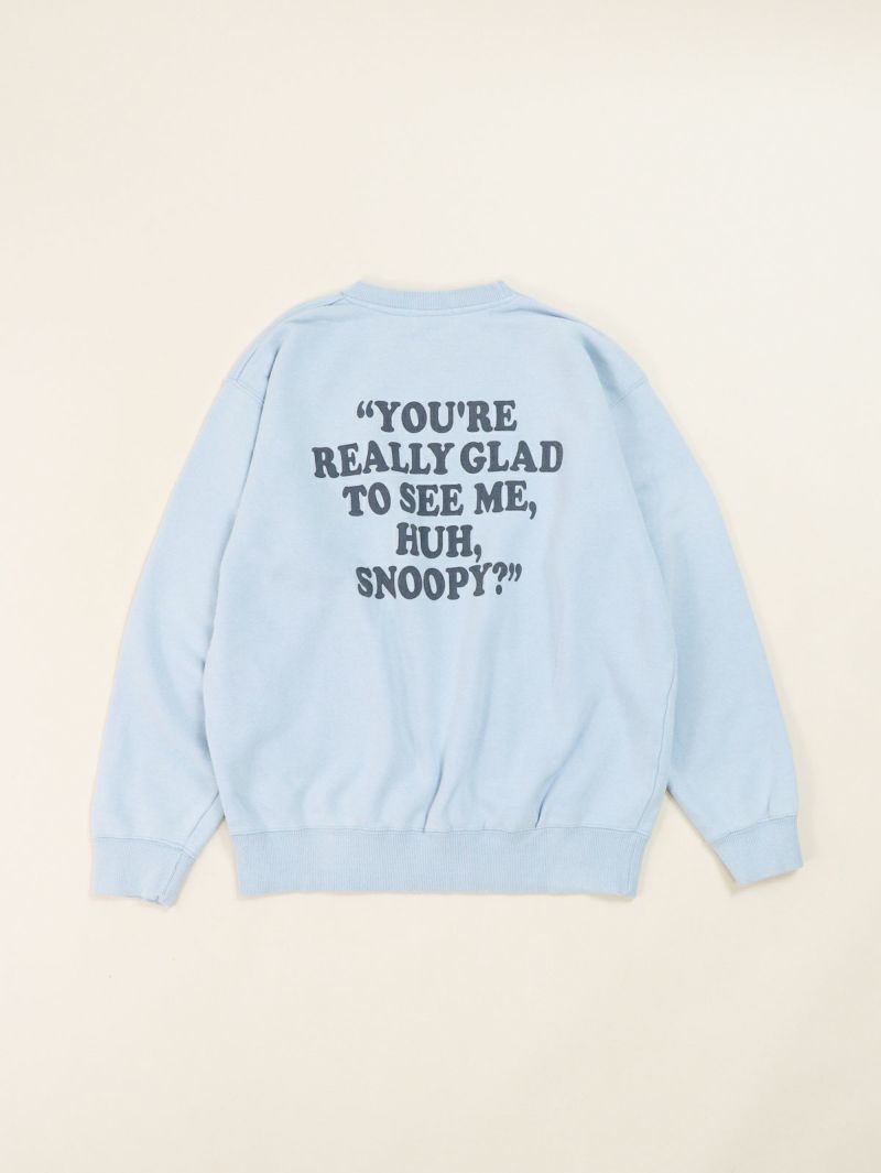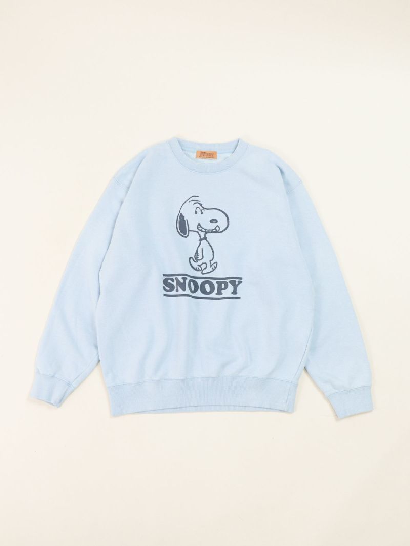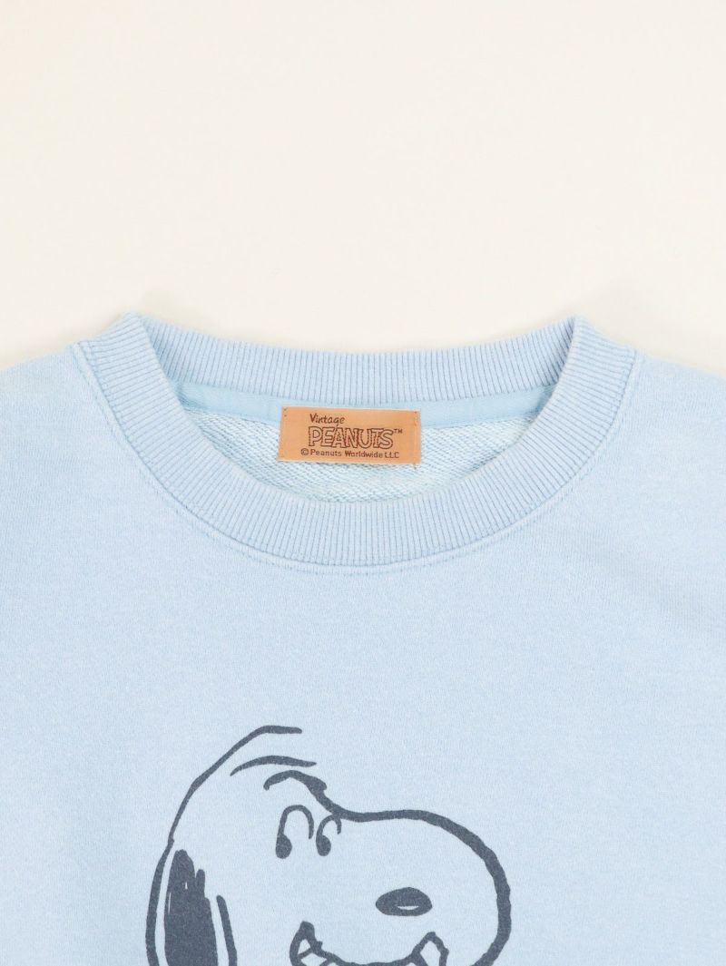 人気キャラクター「スヌーピー」のプリントのスウェット。 ヴィンテージ感のあるBIOウォッシュ加工が施され、柔らかな風合いと快適な着心地が魅力です。バックにもロゴプリントがあり上着を脱いだときも可愛いく、優しいブルーのカラーでジーンズとのワントーンコーデもオススメです。