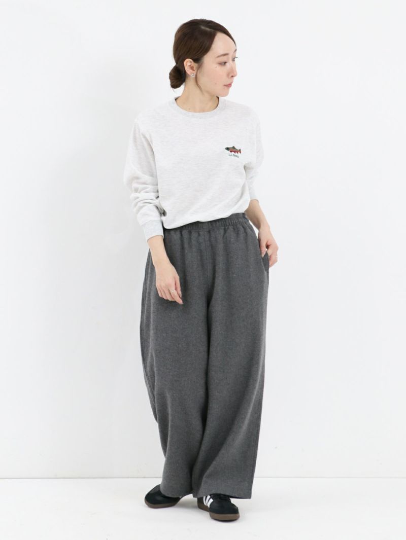 糸の断面を六角形にした機能性ダブルフェイスジャージー素材のクルーネックスウェット。 お魚の刺繍がさりげないアクセントに。吸水速乾性に優れ、ポリエステルながらコットンのようなナチュラルな風合いが魅力で快適な着心地が続く 1枚です。
