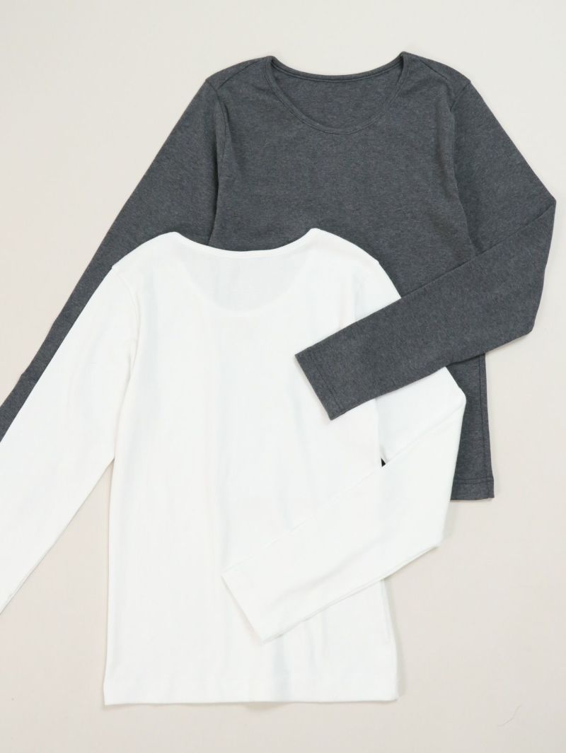 イタリア製アンダーウェアメーカーのgicipi。 長めの袖で自然とたまる感じが今らしいバランスで着こなせます。ちょうど良い肉厚感なので、白でも透けにくく下着を気にせず気軽に1枚で着用出来ます。