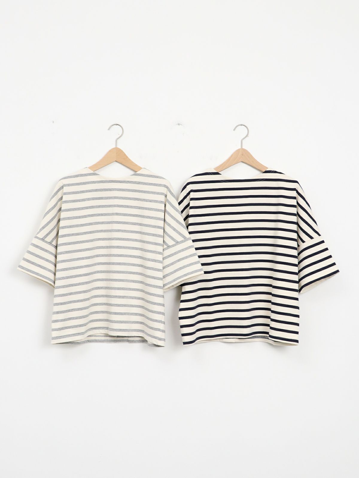[ NOUVELLES DU PARADIS / ヌーベルドゥパラディ ] トロワスライス5分袖クルーネックプルオーバー