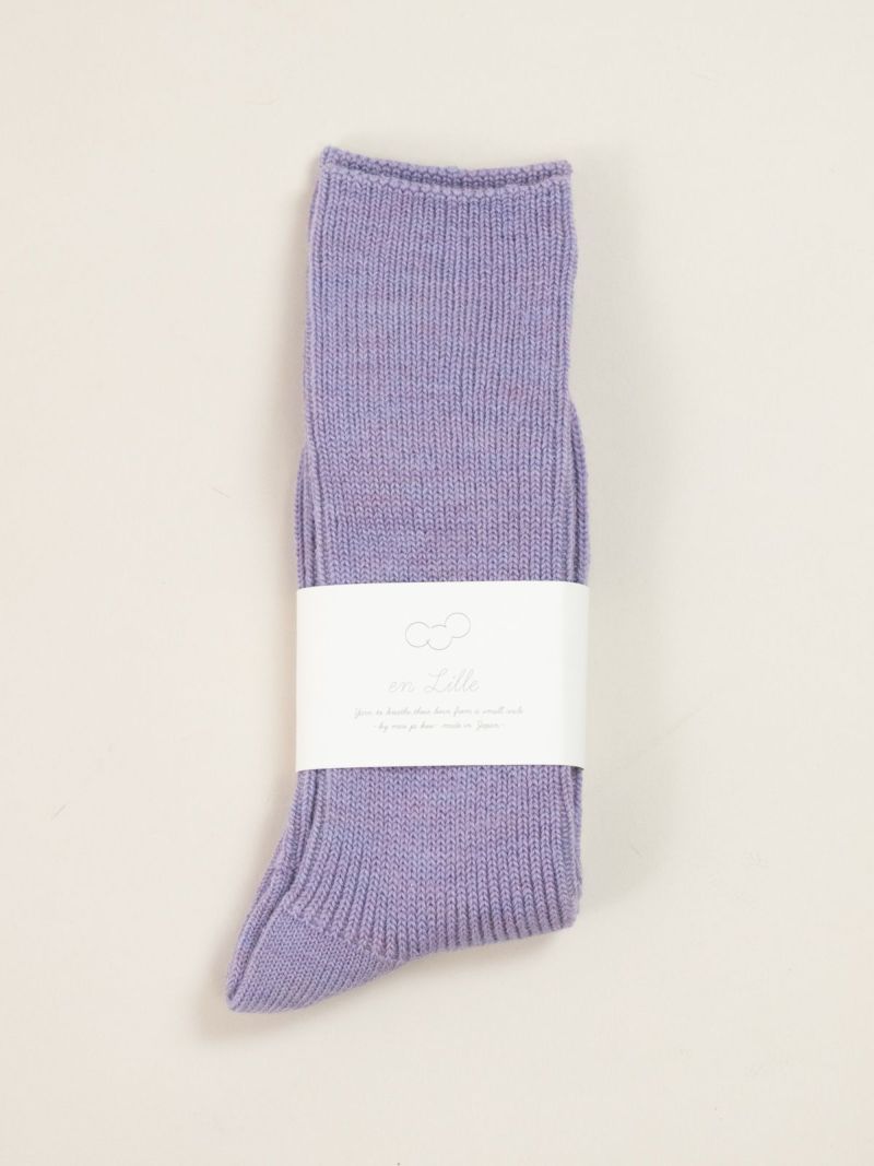 ローゲージでリブ編みしたミドルソックス。 メリノウールで編み上げられており、防縮加工が施されていますので扱いやすくソフトな質感です。