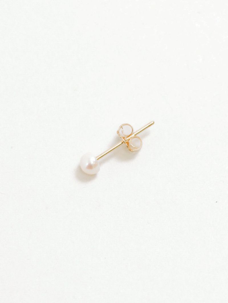 シンプルで飽きのこないパールピアス。 オケージョンからデイリー使いまで合わせやすく、小さめのパールが女性らしい耳元を演出。14KGF でアレルギーが起きづらい素材となっております。
