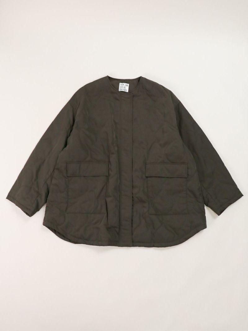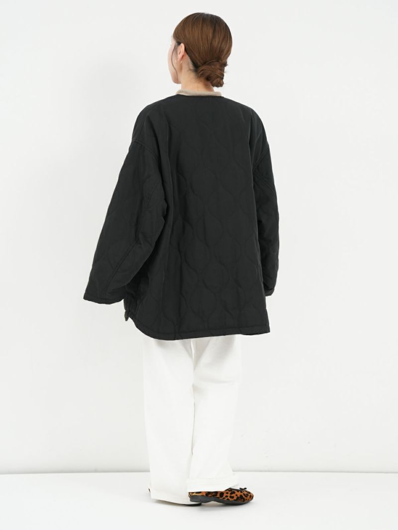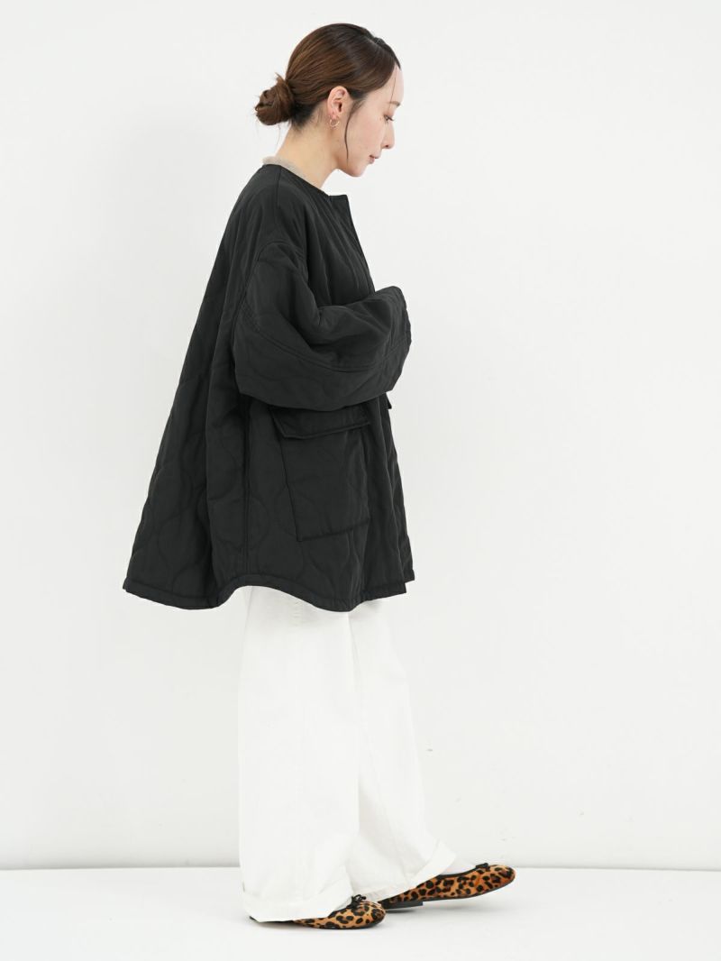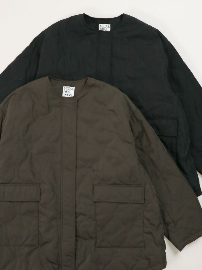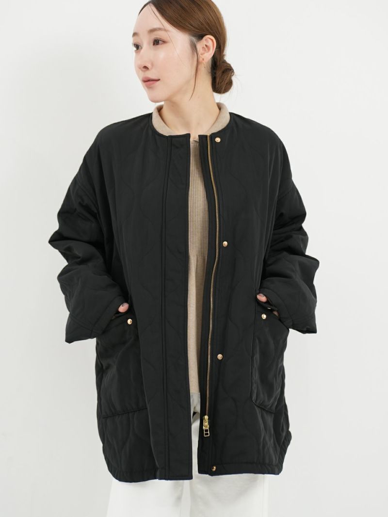 Aラインシルエットが美しいキルテッドコート。 ノーカラーのすっきりとしたデザインに、ひょうたんキルトがほどよい立体感と柔らかさを添えます。カジュアルにもきれいめにも合わせやすく、デイリーに活躍。ダブルジップでシルエットの調整もしやすく、着こなしの幅を広げてくれます。