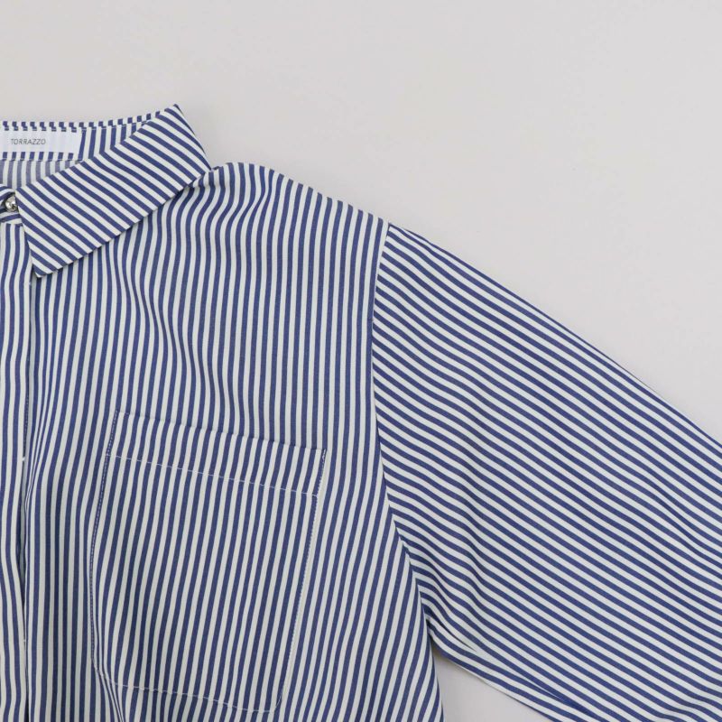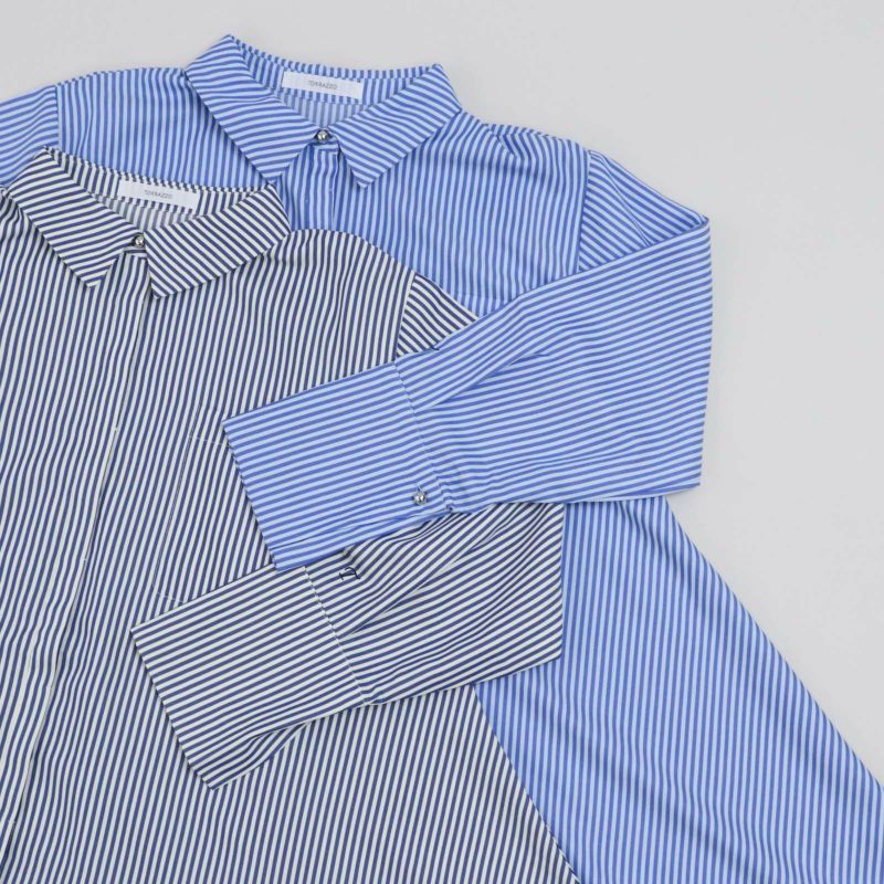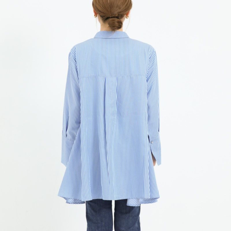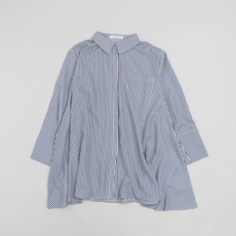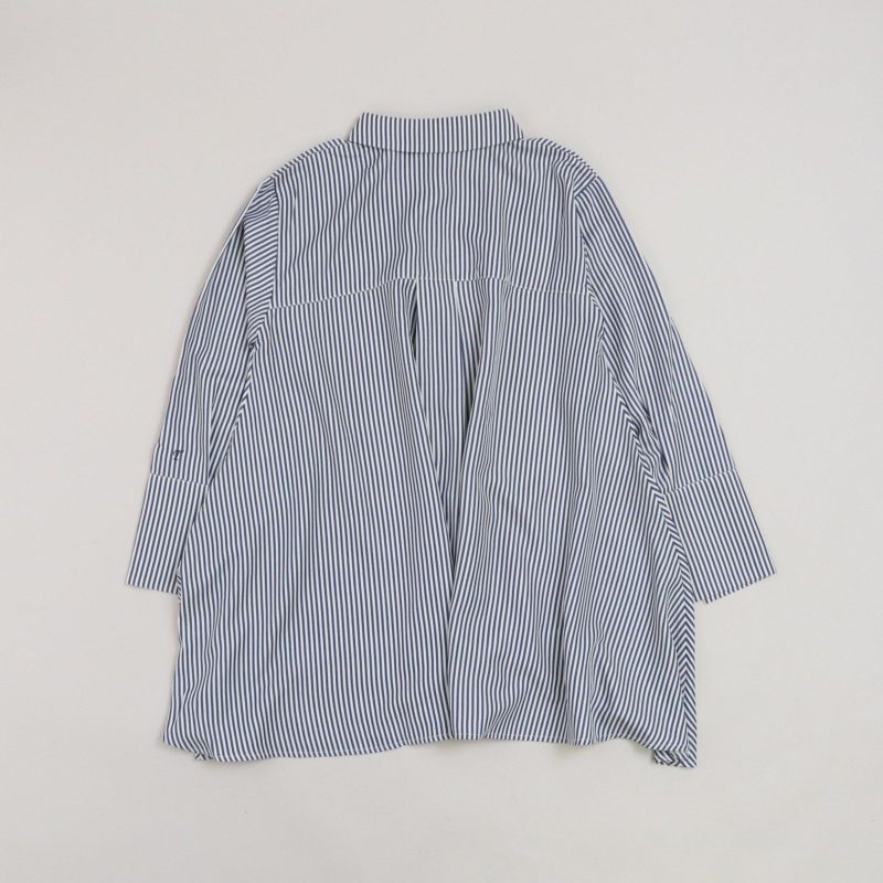 夏の終わりから着れるAラインのシャツ。 軽い羽織りで着用したり、釦を留めてフレア感を楽しんだり、ビスチェや短丈ベストを合わせたりと着回しの楽しめる1枚です。