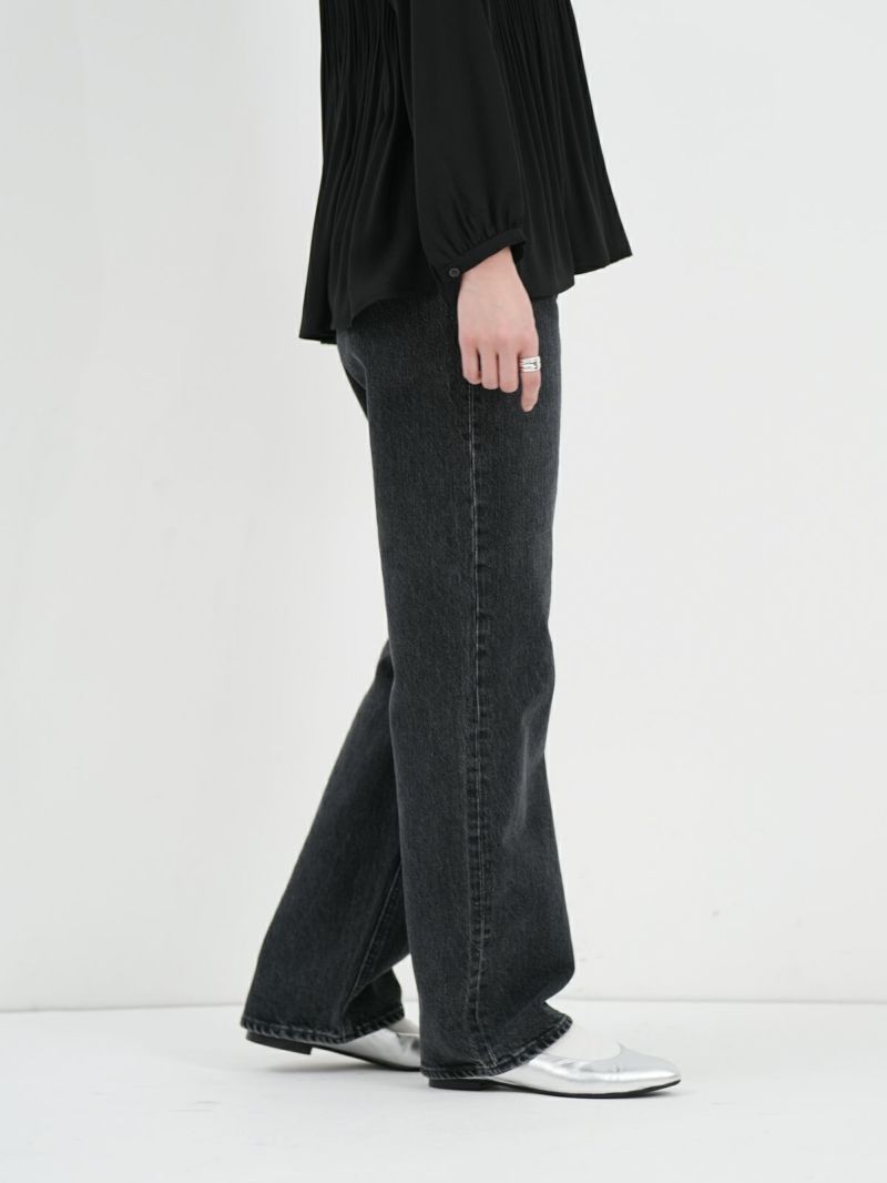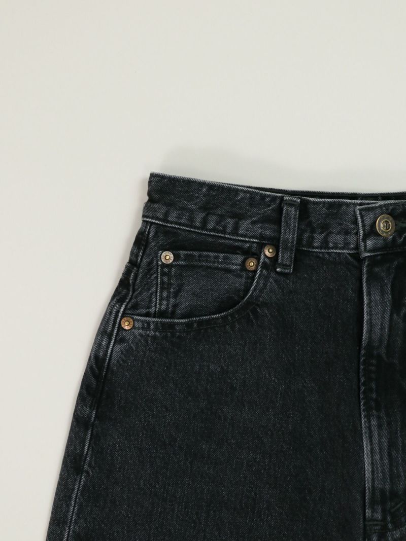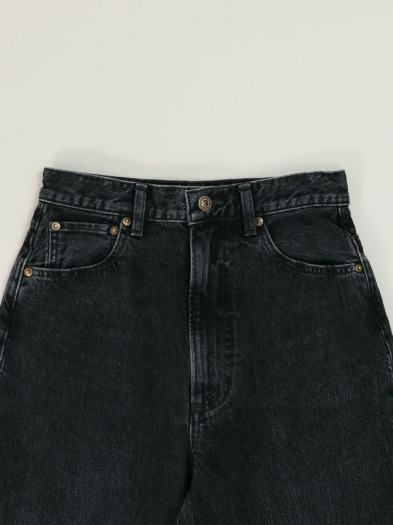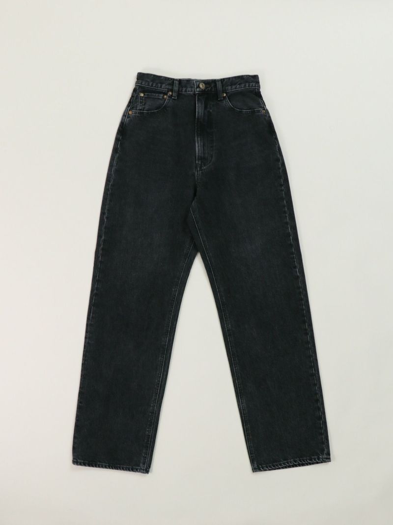 ヴィンテージのような風合いのあるハイウエストデニムパンツ。 ハイウエストとスッキリとしたストレートシルエットで美脚効果抜群。ブラックデニムはきれいめな雰囲気にもピッタリです。