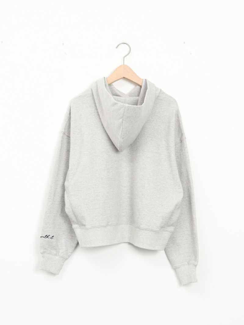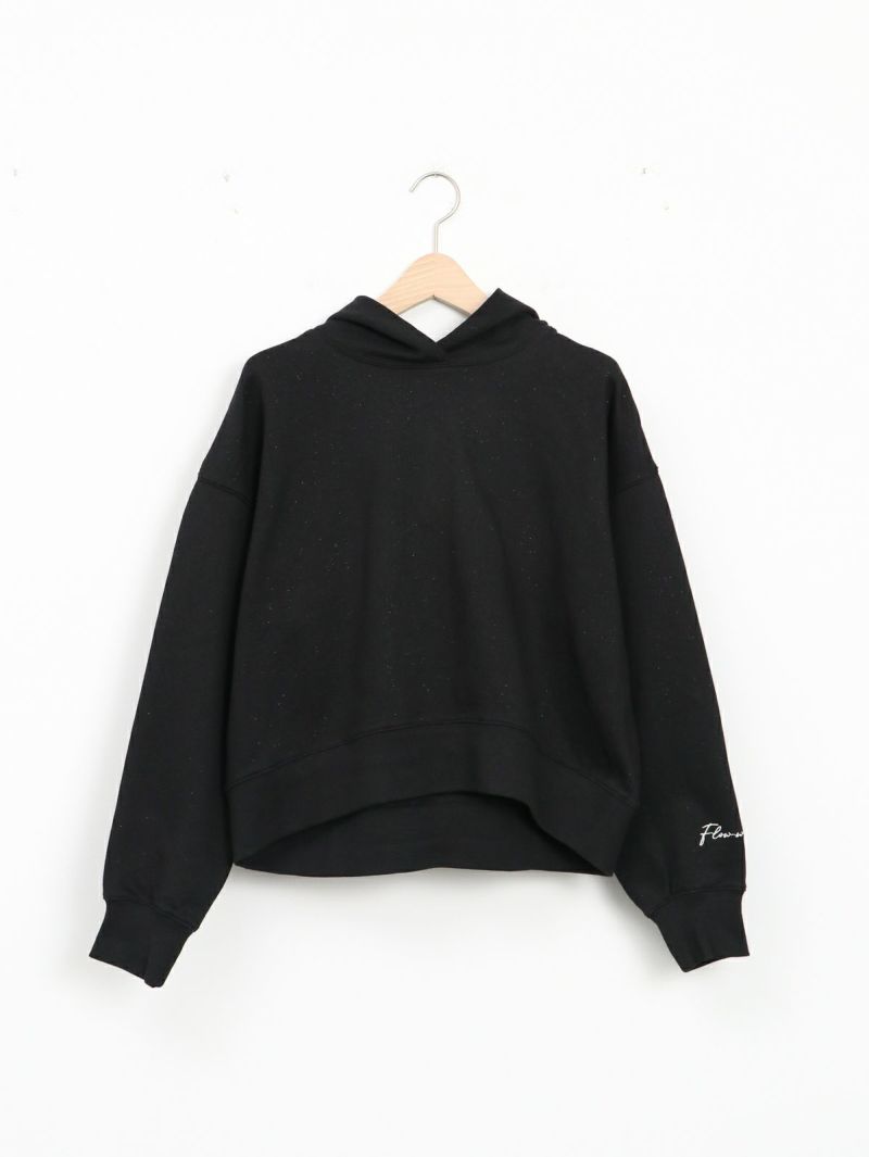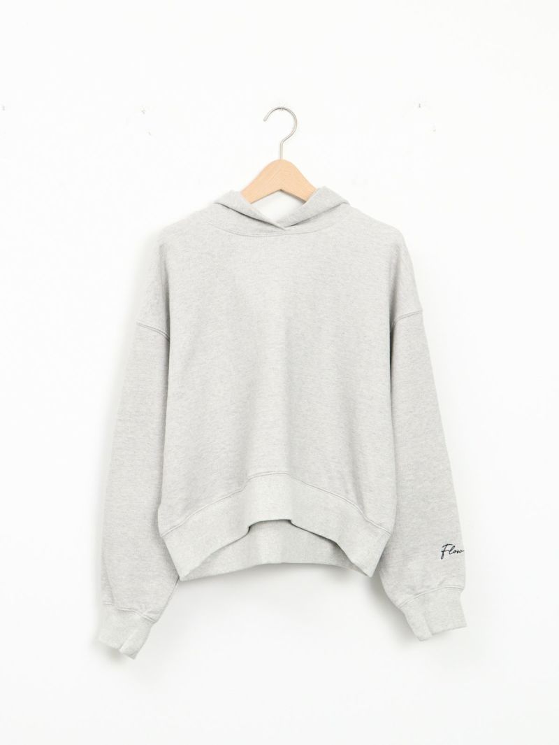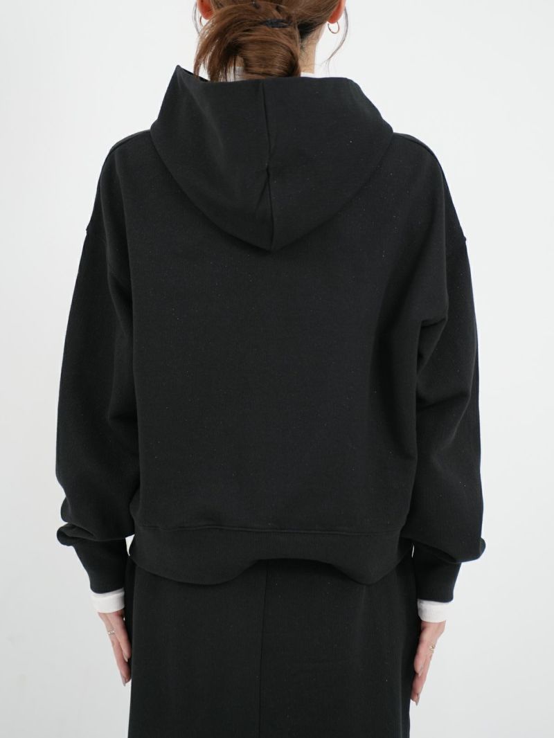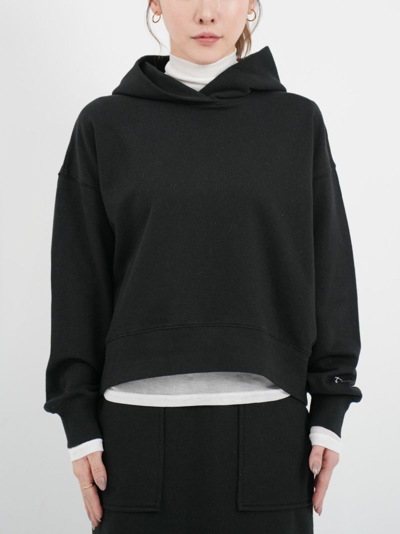 さりげなく光る大人の余裕を感じさせるフーディープルオーバー。 綿100%で肌触りが良く、光が当たるとほんのり煌めく上品なラメが、コーデにやわらかな華やかさを添えてくれます。ゆったりとしたシルエットと、袖口・裾のリブでリラックス感も◎ 左袖には筆記体のロゴ刺繍を施し、カジュアルな中にもこだわりを感じさせるデザインに仕上げました。