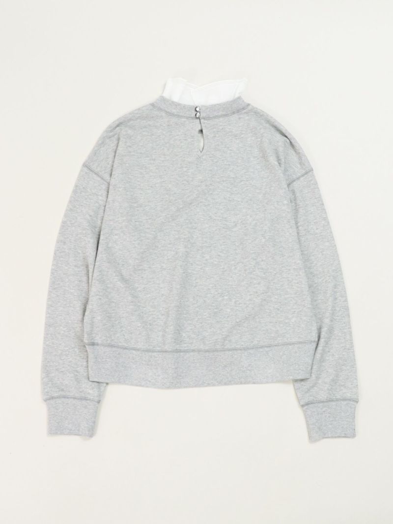 大人カジュアルが華やぐ襟フリル付きミニ裏毛プルオーバー。 肌ざわりのいいコットン100%のミニ裏毛素材は、軽すぎず重すぎない絶妙な厚み。季節の変わり目にも重宝する、毎日にちょうどいい一枚です。襟の内側には、取り外し可能なオーガンジーのフリルをあしらい、シンプルな中にふんわりとした甘さをプラス。パンツにもスカートにも合わせやすく、大人のカジュアルスタイルにさりげなくフィットし、一枚で二つの表情が楽しめる頼れるプルオーバーです。