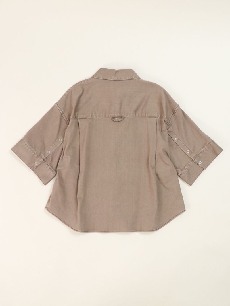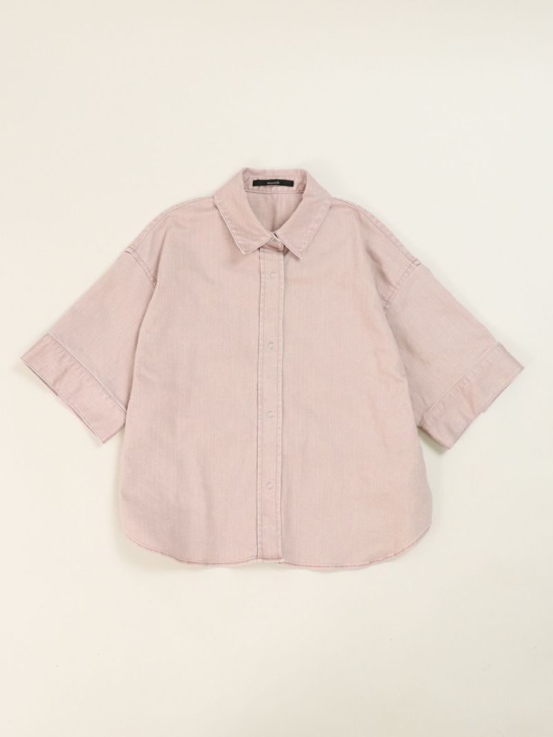 -カラーデニムシリーズ- 独特な風合いが特徴のハーフスリーブシャツ。袖のボタン開きや立体感のあるフォルムデザインがポイント。 同素材のマキシスカートと合わせてセットアップコーデもおすすめです。
