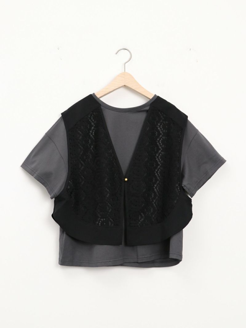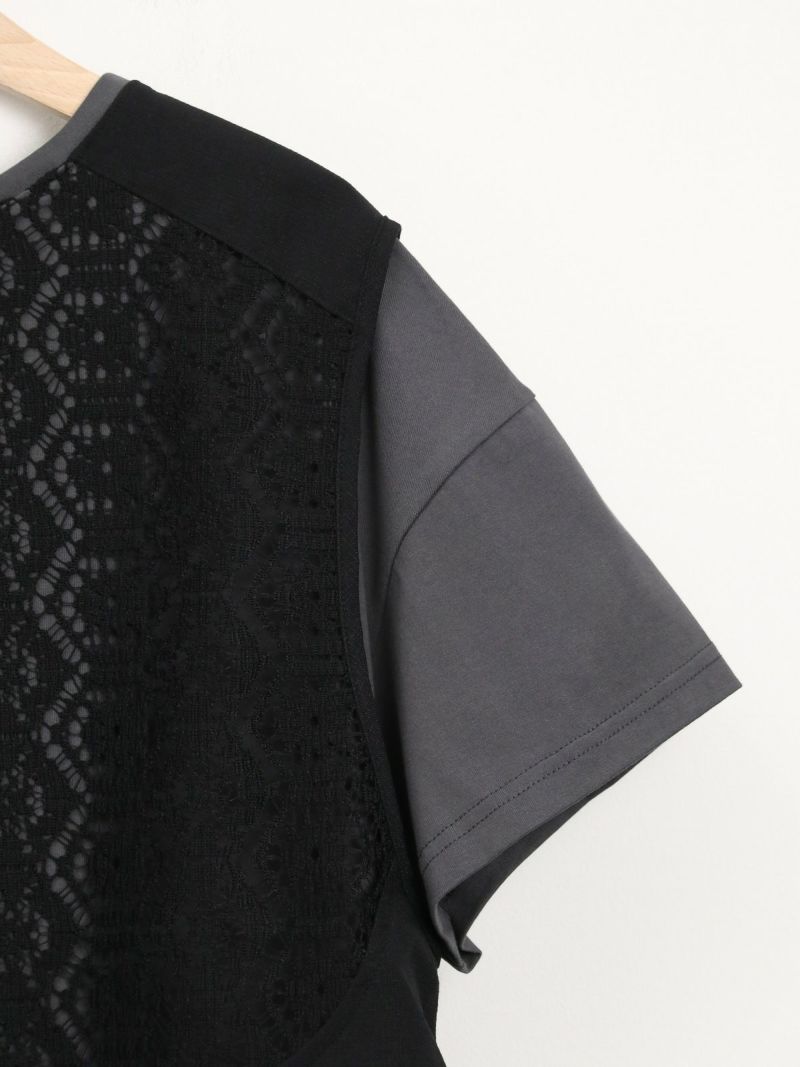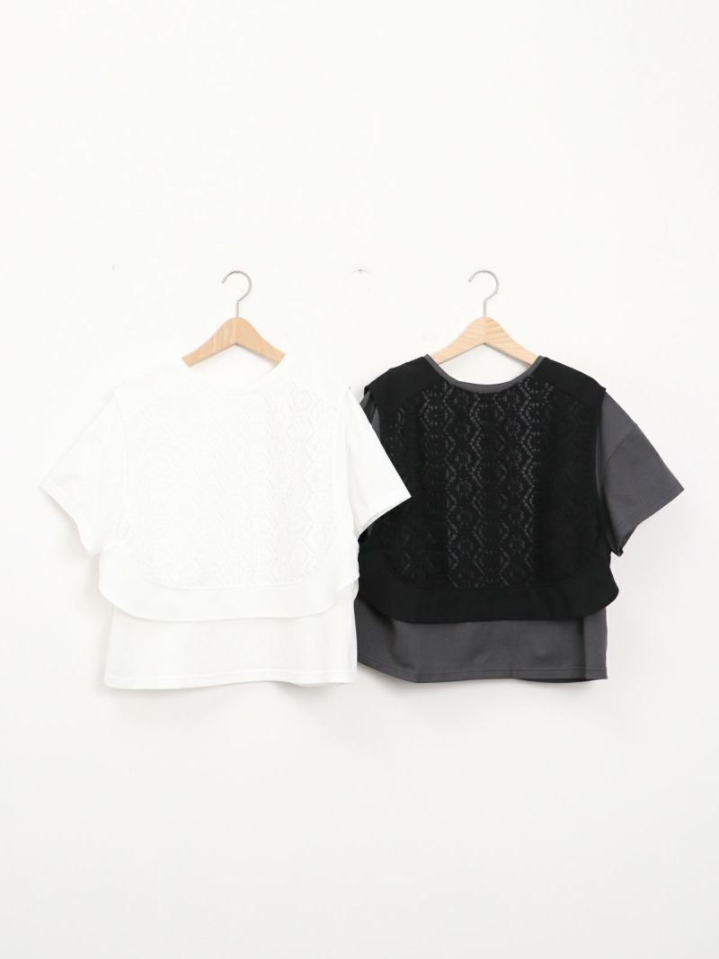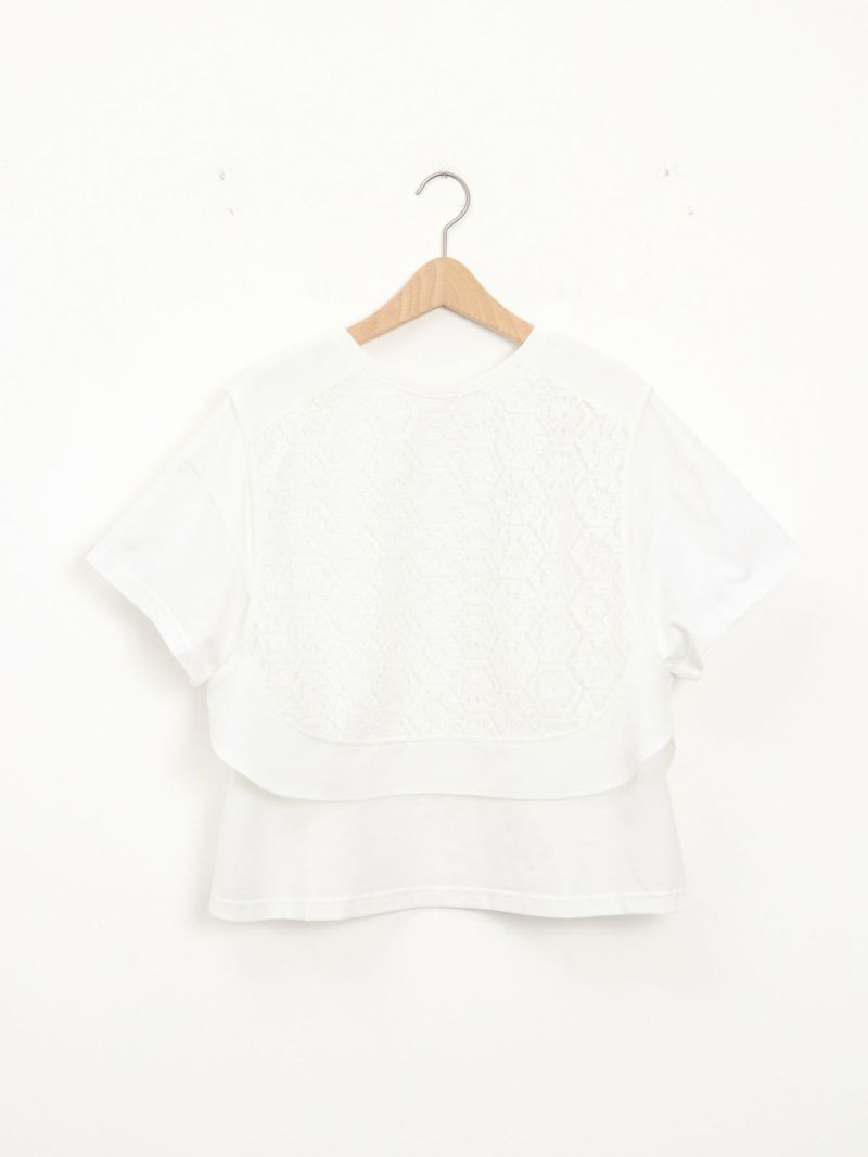 肌触りの良い上質なコットン100%のシルケット素材のレイヤードプルオーバー。 前後2wayで着用可能で、繊細なレースがカジュアルスタイルを品良くまとめてくれます。