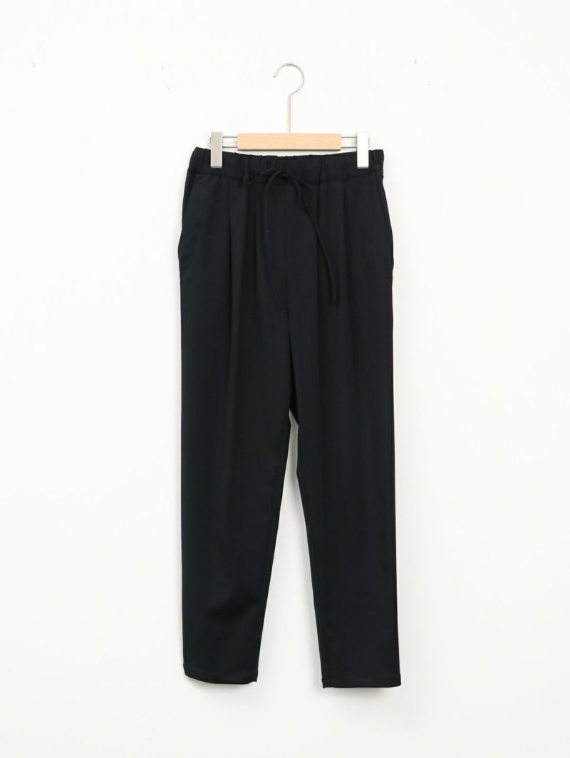 腰回りにタックでゆとりを持たせ、足首にかけてはタイトなラインに馴染むように仕上げたルーズテーパードパンツ。