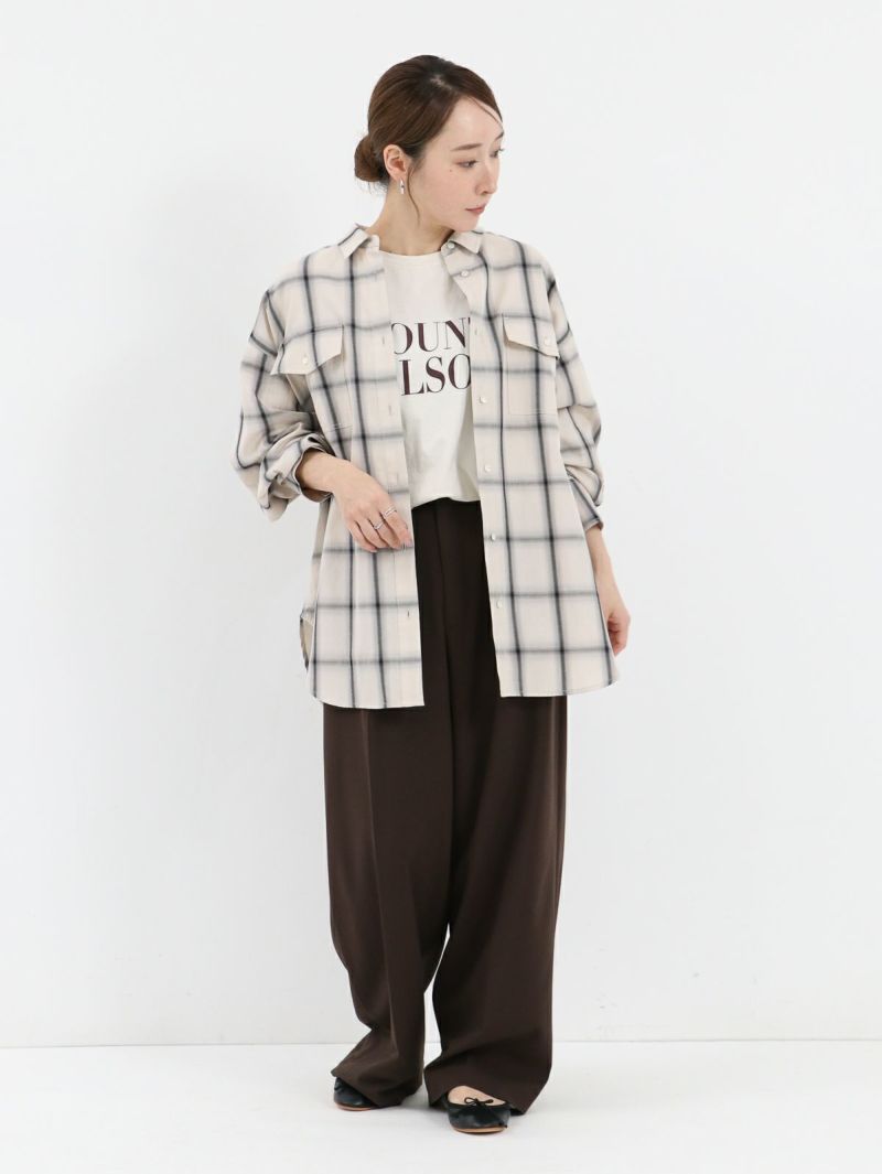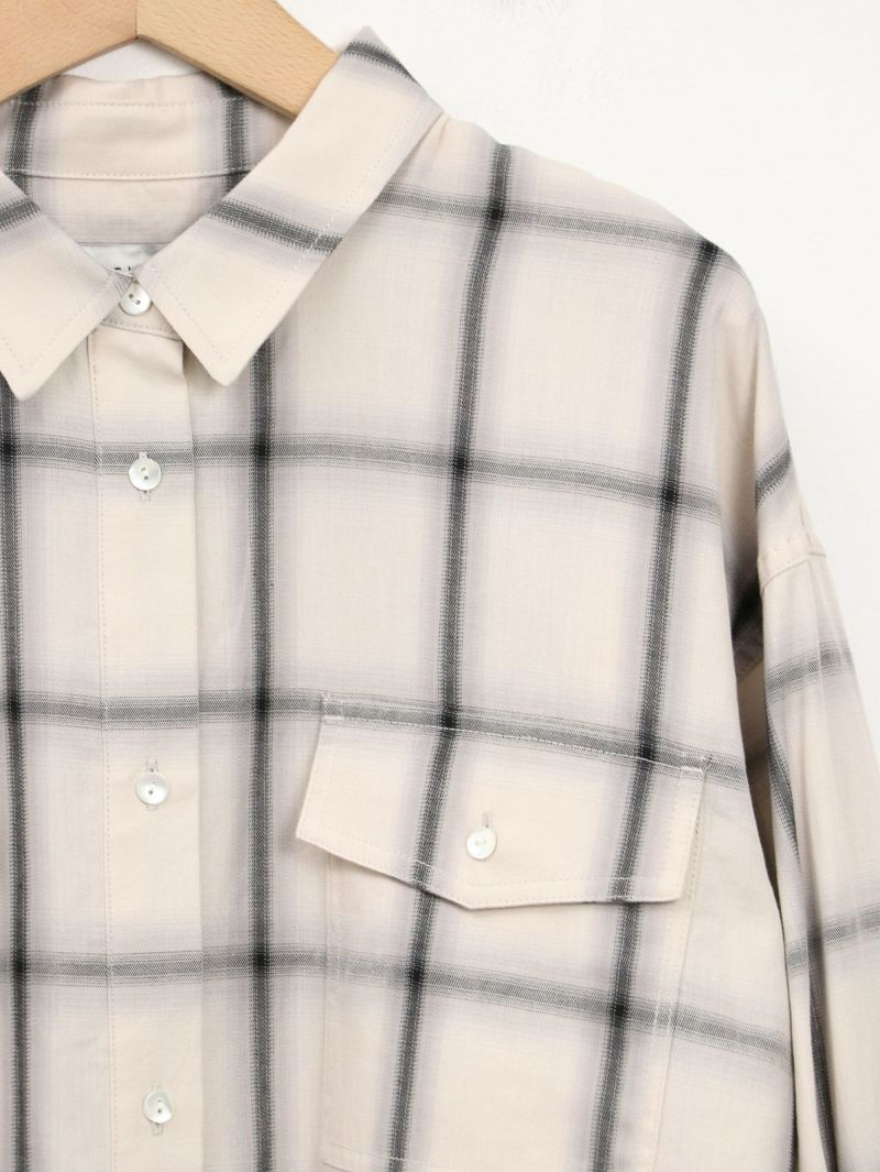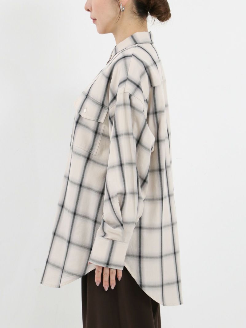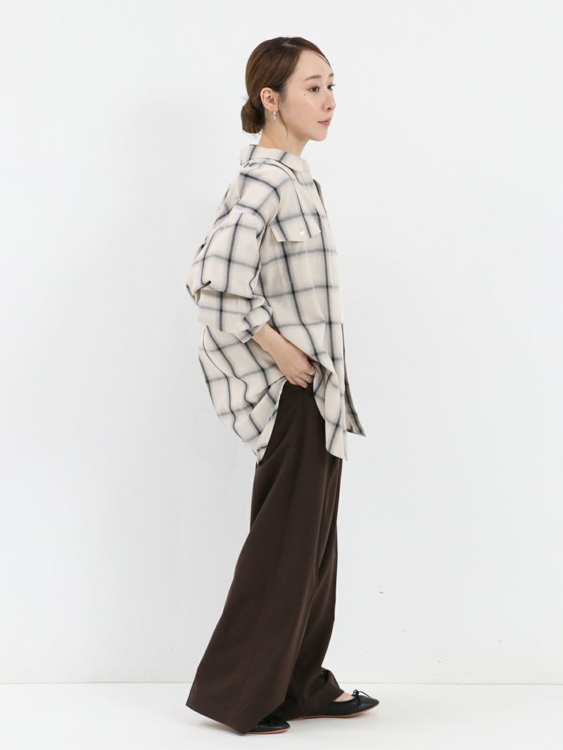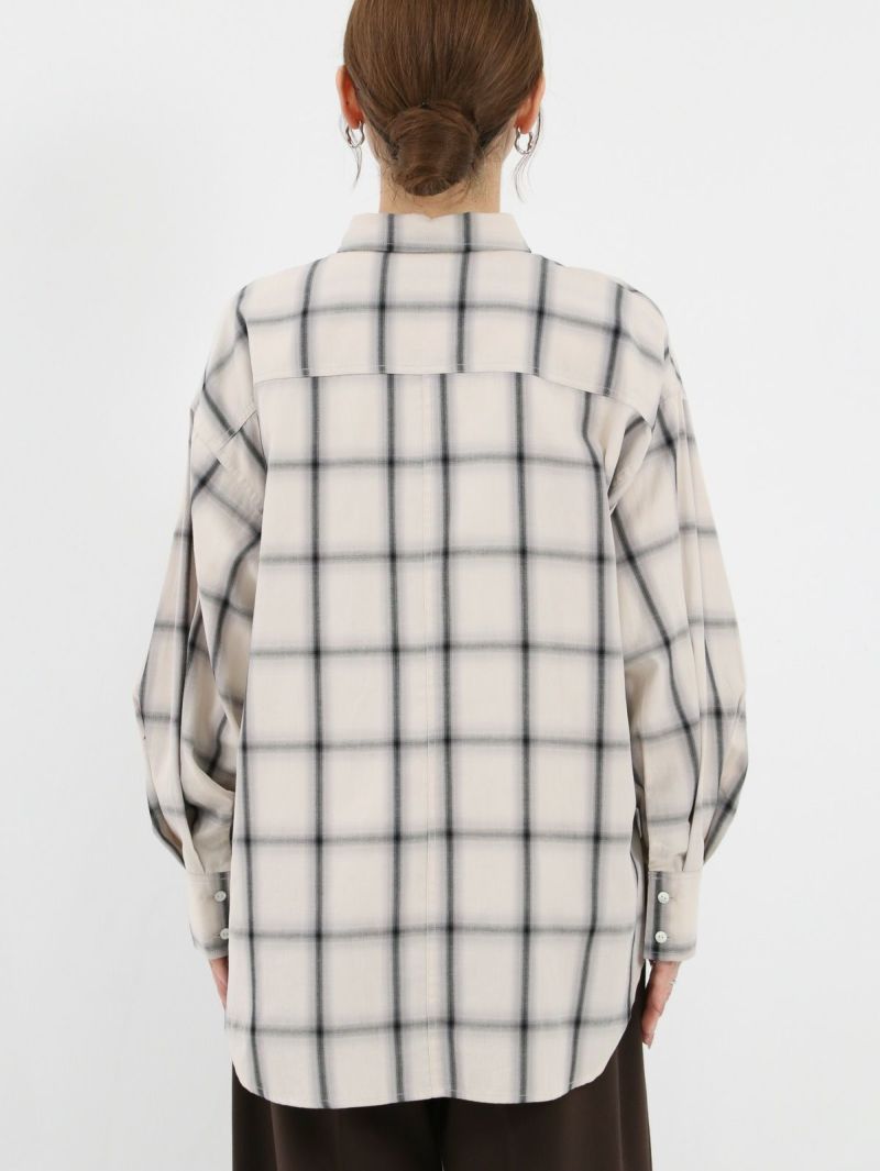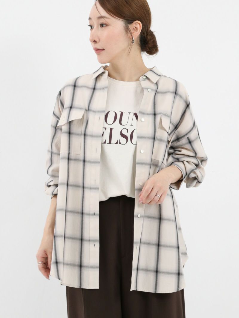 落ち着いたカラーのオンブレチェックシャツは大人の女性にぴったりなトレンドアイテム。柔らかく落ち感ある生地はカジュアルながらも洗練された雰囲気に。暑い時期からタンクトップなどにさらっと羽織って、大人カジュアルなコーディネートがおススメです。