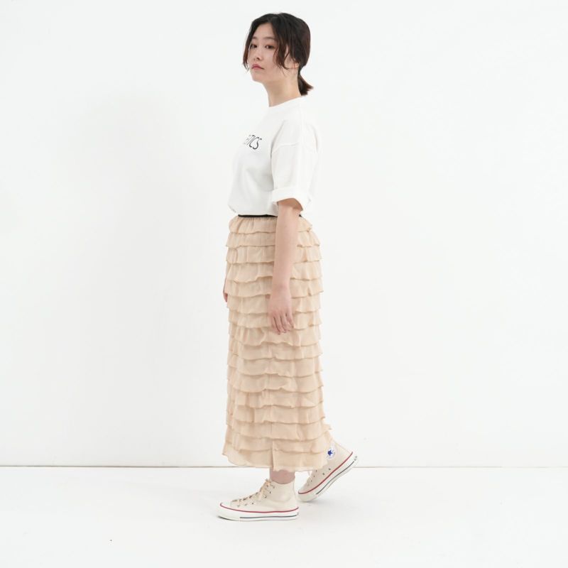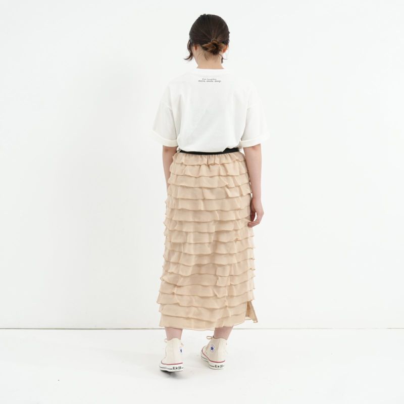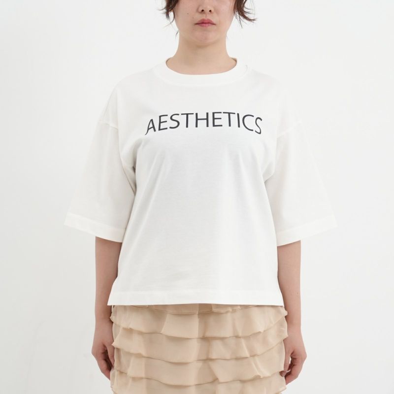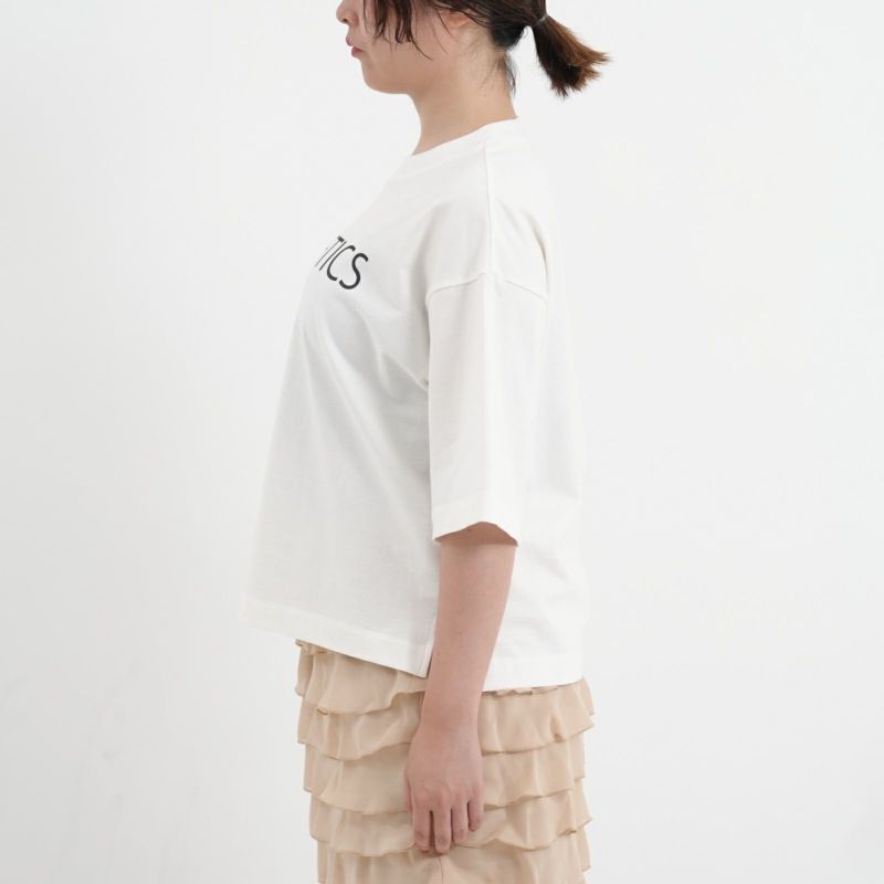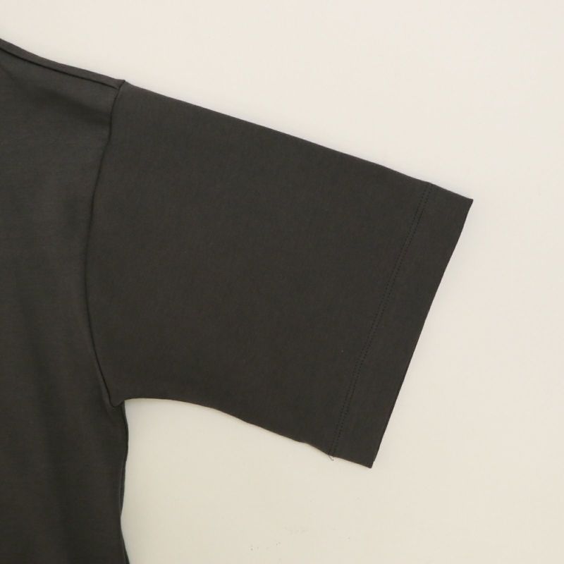 モノトーンカラーのボディにさりげないロゴがデイリーに合わせやすいロゴTシャツ。 程よい厚みのTシャツで、お袖は肘が隠れるくらいになっています。コーディネートに合わせてすっきり見せたい時はロールアップしていただくのがおすすめ。着丈は長すぎないので、ボトムを選ばず合わせていただけます◎