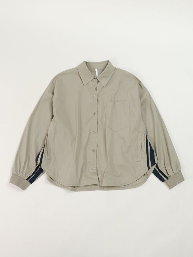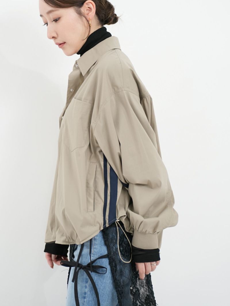 シャツとブルゾンをミックスしたようなデザインのライトアウター。 両サイドから袖にかけてのラインがポイントです。裾のドロストを絞って好みのシルエットに調整可能。程良い丈感でボトムスを選ばず、合わせやすいアイテムです。