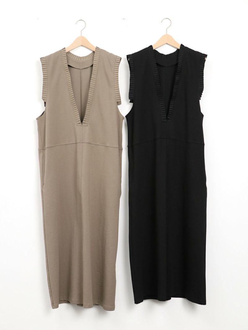 程よいハリと落ち感のある素材が美しいプリーツを引き立てます。 ベーシックながらも印象的なブラック、柔らかさと洗練を感じるチャコールグレーの2色展開。