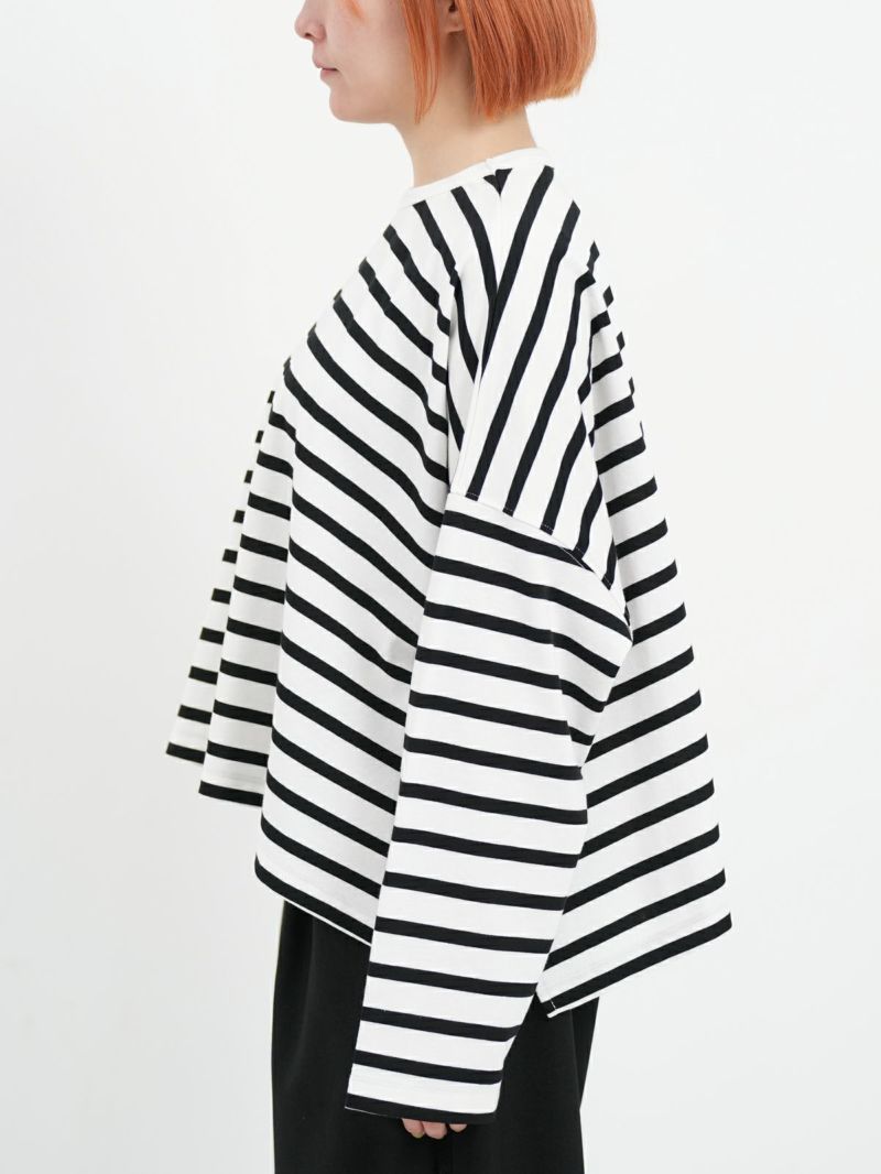 定番のボーダーカットソー。 コンパクトな丈感とゆとりのあるシルエットでトレンド感を加えました。春らしさを感じるカラーの3色展開です。