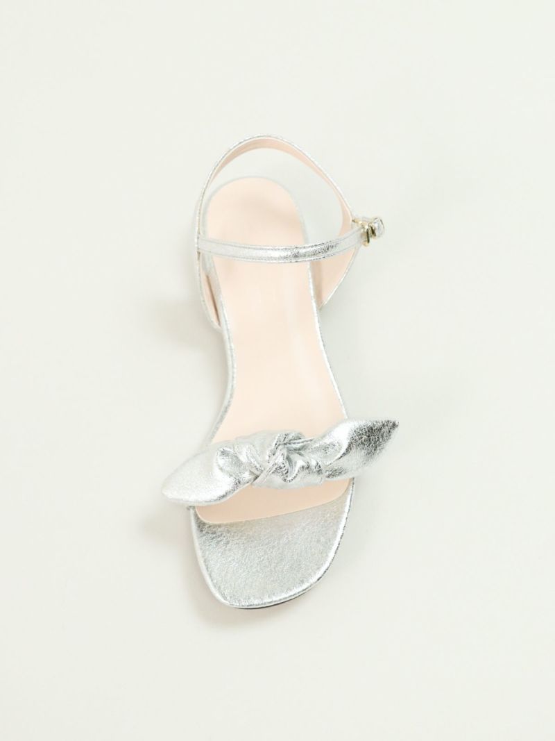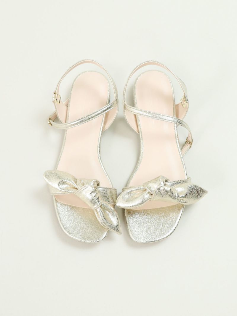 足元にさりげない可愛らしさを添える、上品なリボンサンダル。
