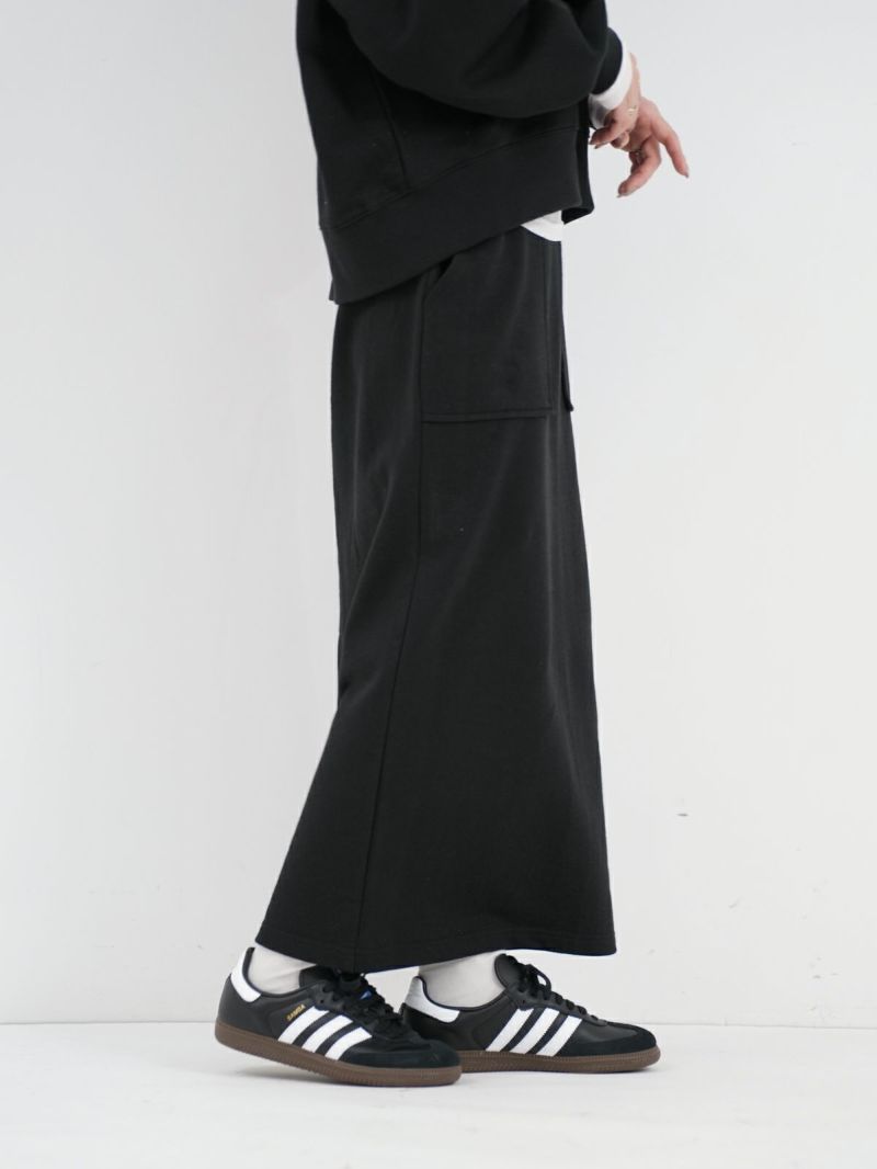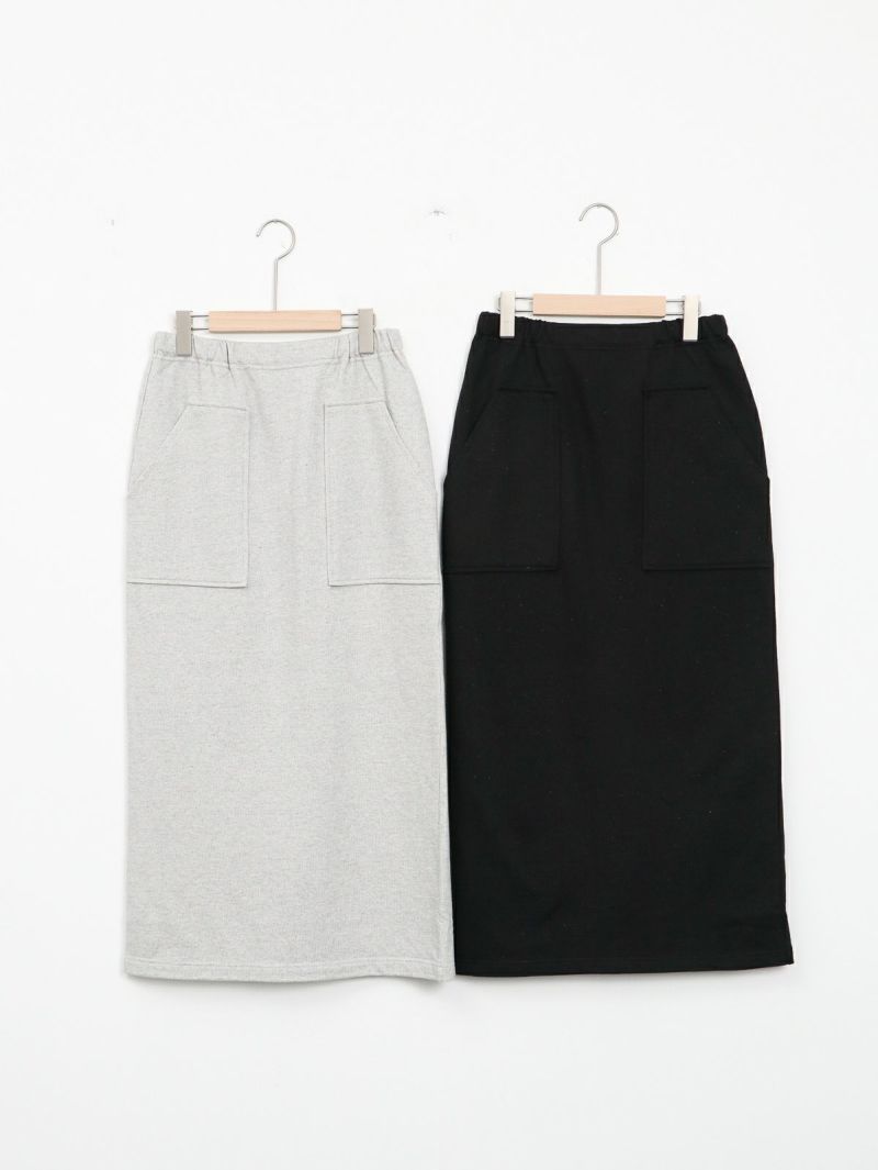 大人カジュアルを上品に楽しめるラメ入りIラインスカート。 カジュアルすぎず、でも気負わない、ちょうどいいバランスを叶えてくれます。すとんと落ちるIラインシルエットで、すっきり見えも叶えながら、ウエストは総ゴムで着心地らくちん。フロントにはポケット付きで実用性も◎後ろ裾にはスリットが入っているから足さばきもよく、スニーカーにも好相性のレングス感です。