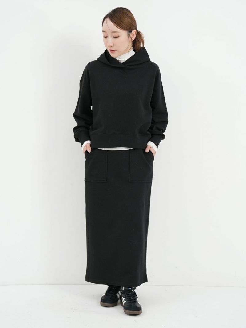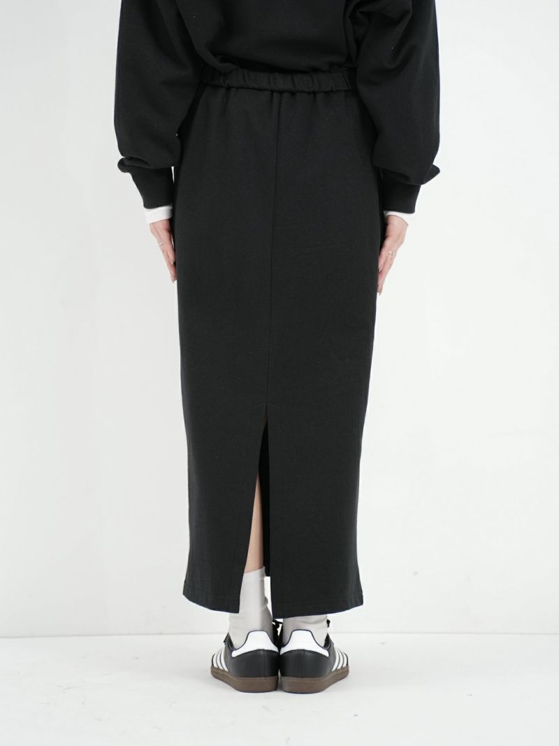 大人カジュアルを上品に楽しめるラメ入りIラインスカート。 カジュアルすぎず、でも気負わない、ちょうどいいバランスを叶えてくれます。すとんと落ちるIラインシルエットで、すっきり見えも叶えながら、ウエストは総ゴムで着心地らくちん。フロントにはポケット付きで実用性も◎後ろ裾にはスリットが入っているから足さばきもよく、スニーカーにも好相性のレングス感です。