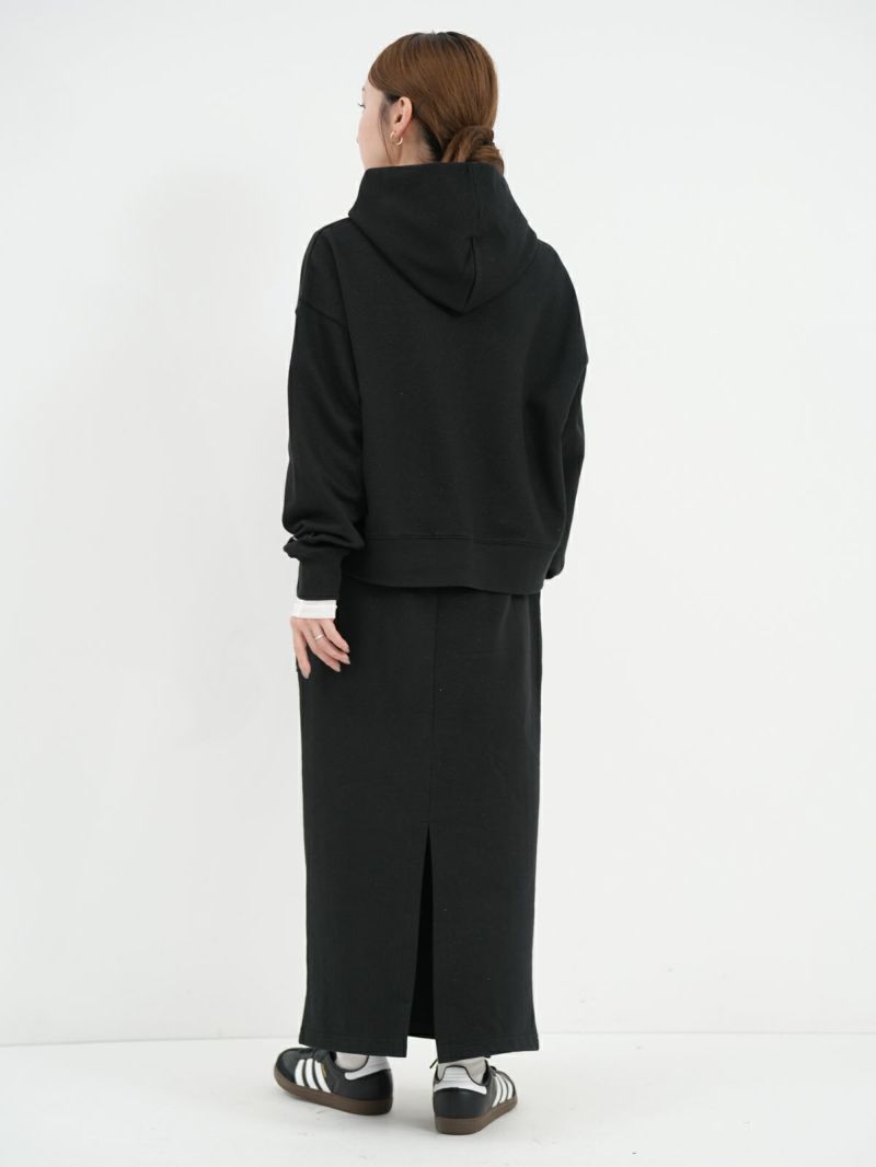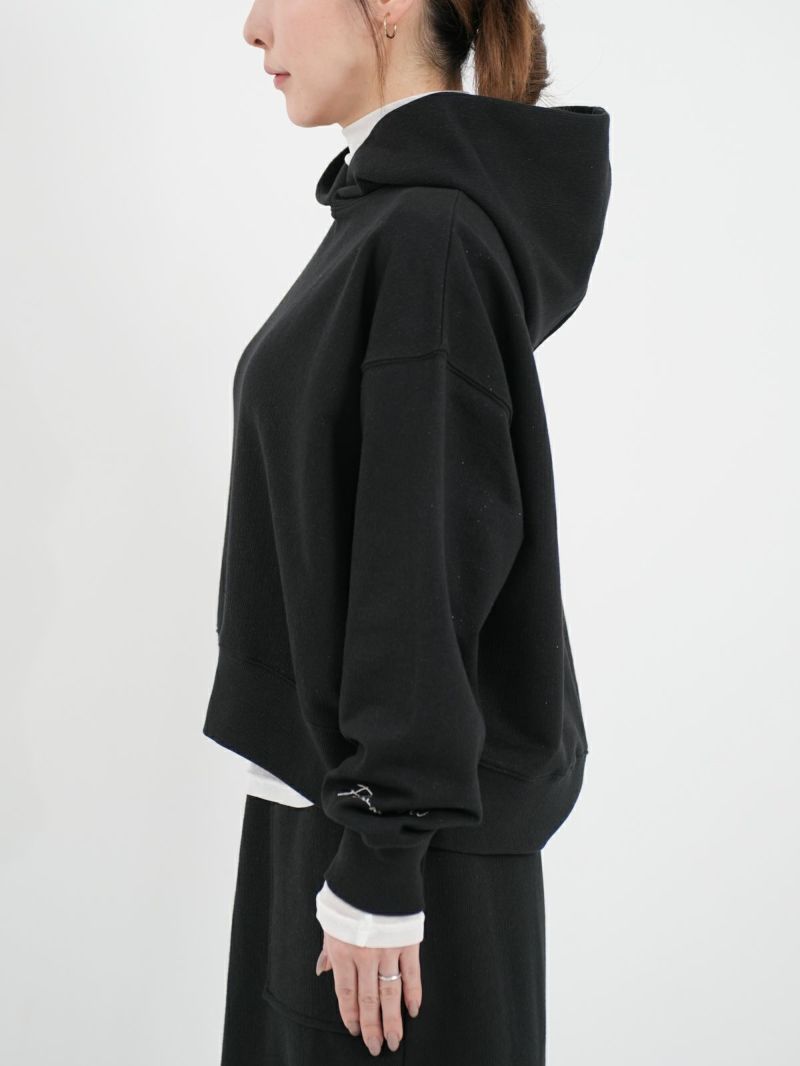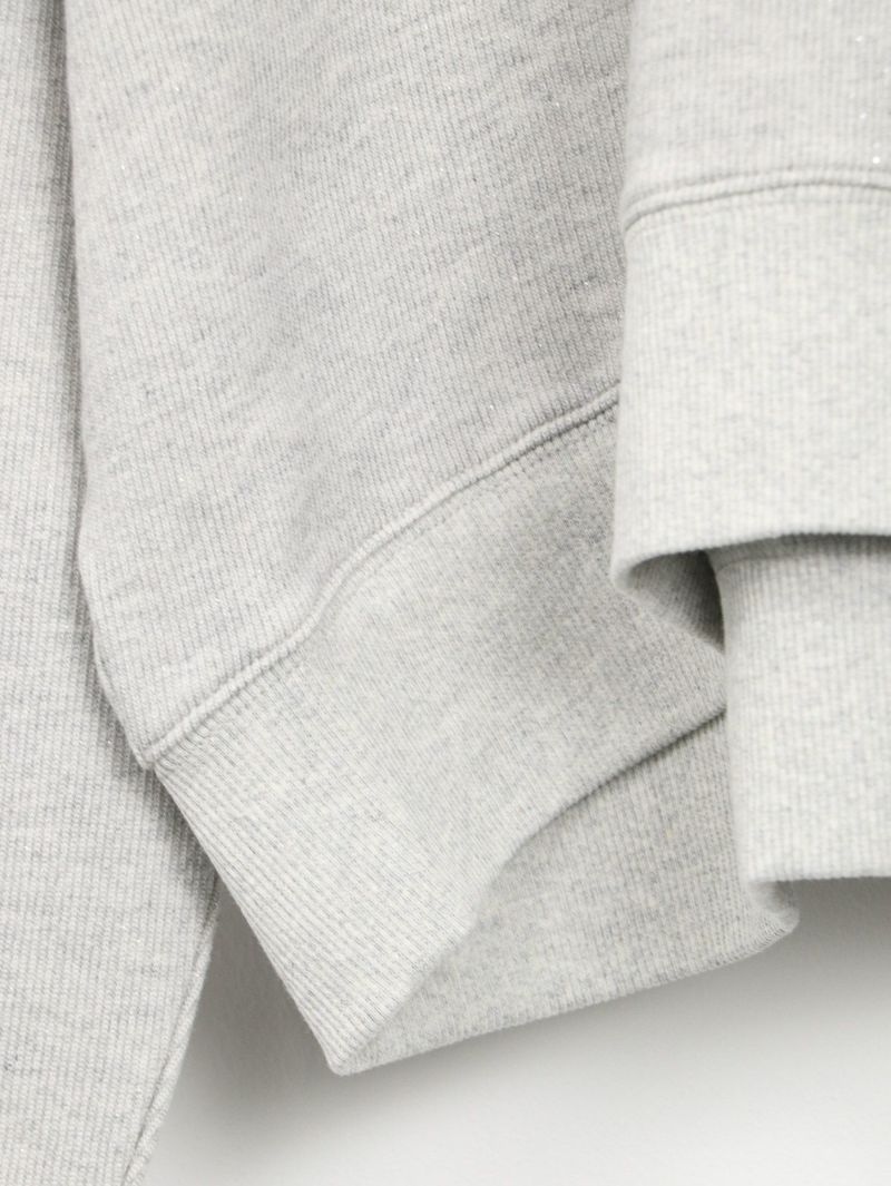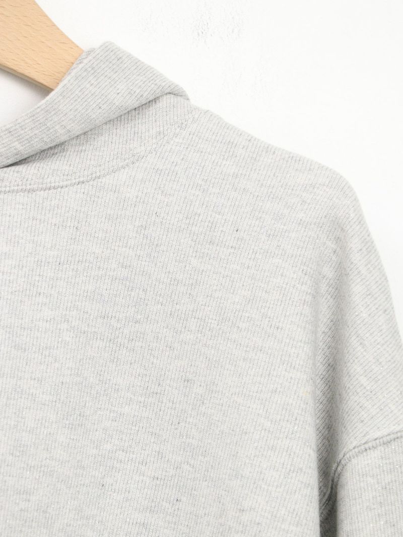 さりげなく光る大人の余裕を感じさせるフーディープルオーバー。 綿100%で肌触りが良く、光が当たるとほんのり煌めく上品なラメが、コーデにやわらかな華やかさを添えてくれます。ゆったりとしたシルエットと、袖口・裾のリブでリラックス感も◎ 左袖には筆記体のロゴ刺繍を施し、カジュアルな中にもこだわりを感じさせるデザインに仕上げました。