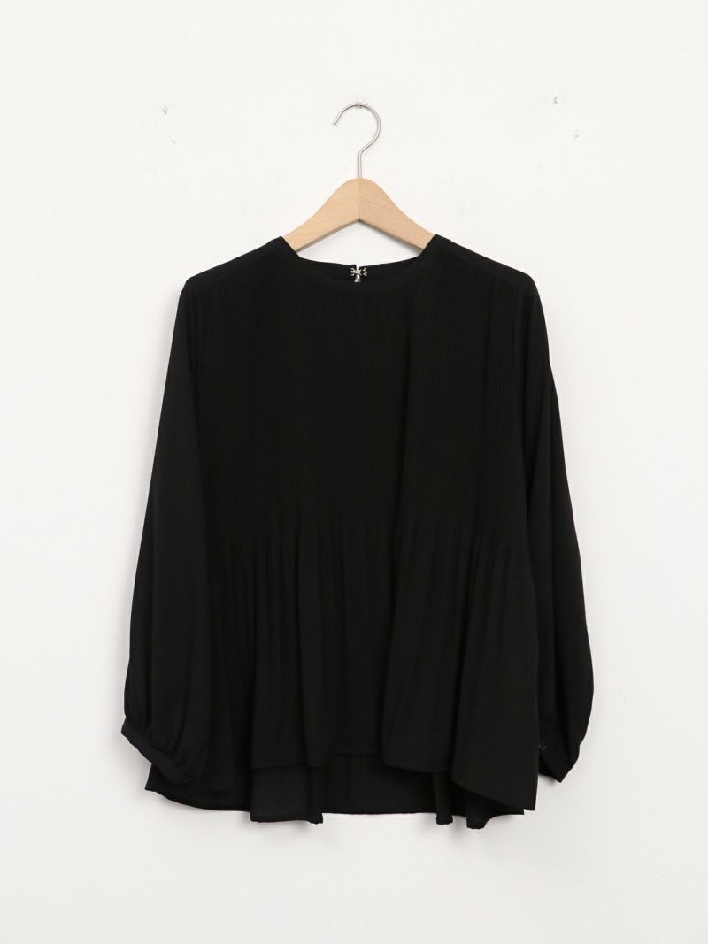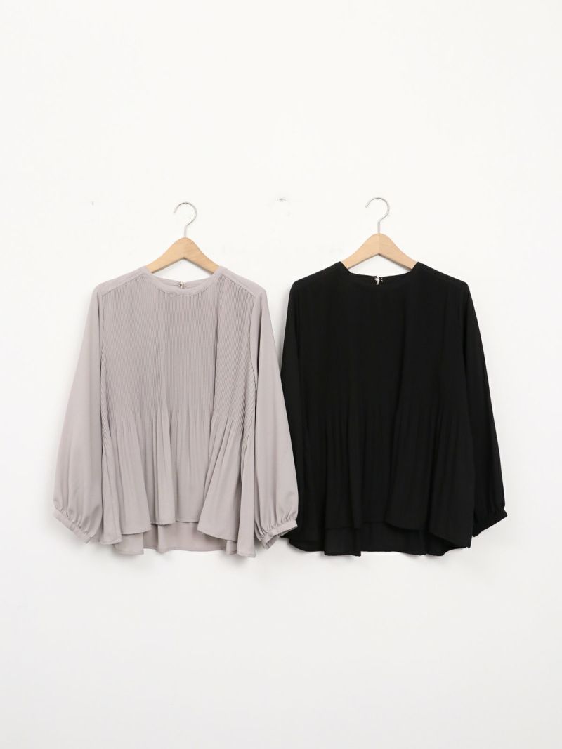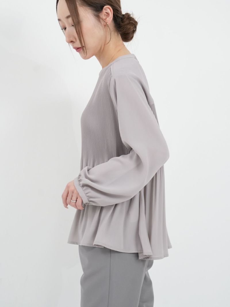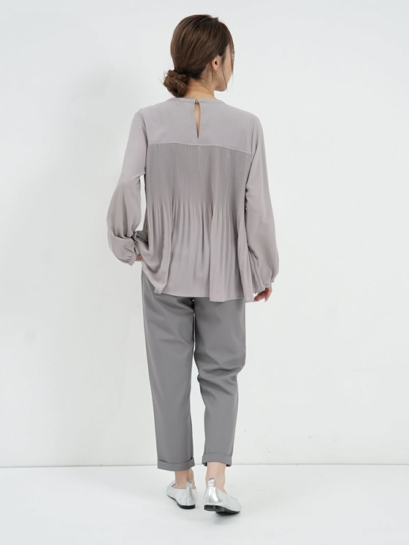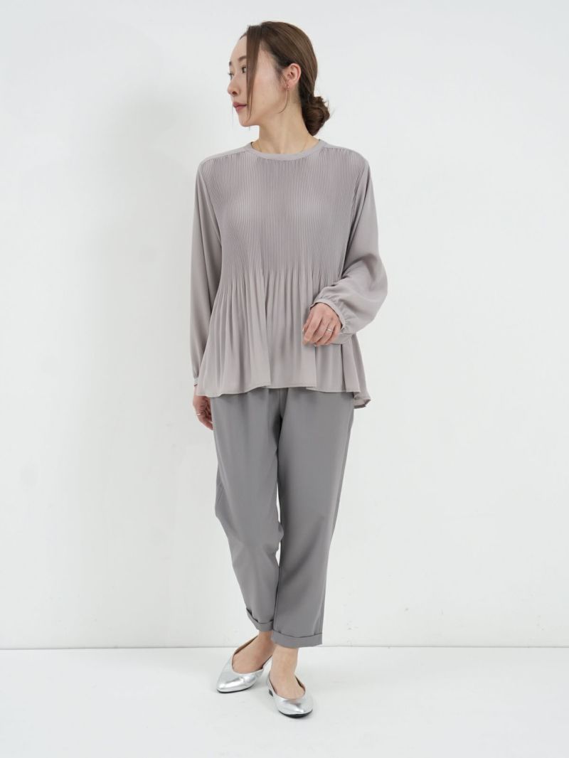 ドライな表面感で、シワになりにくいジョーゼットを使用したプリーツブラウス。 ジャケットやスラックスと合わせてセレモニーやお仕事にはもちろんデニムでカジュアルダウンした着こなしもおすすめです。