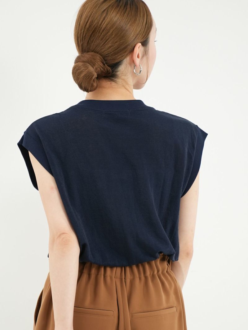 細かい透かし編みで程良いシアー素材が清涼感があり、肌見せしすぎないのも嬉しいポイントです。インナーにもかさばらずスッキリと着用でき、汎用性の高い1枚です。
