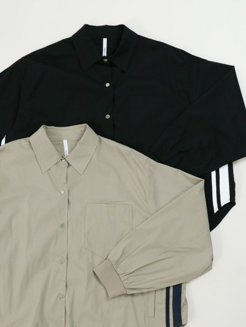 シャツとブルゾンをミックスしたようなデザインのライトアウター。 両サイドから袖にかけてのラインがポイントです。裾のドロストを絞って好みのシルエットに調整可能。程良い丈感でボトムスを選ばず、合わせやすいアイテムです。
