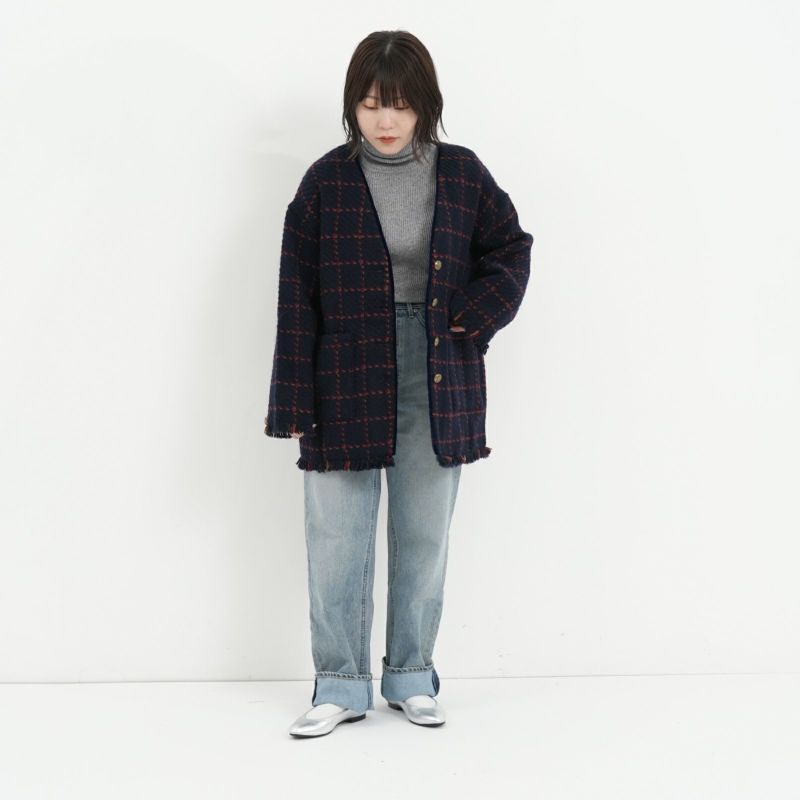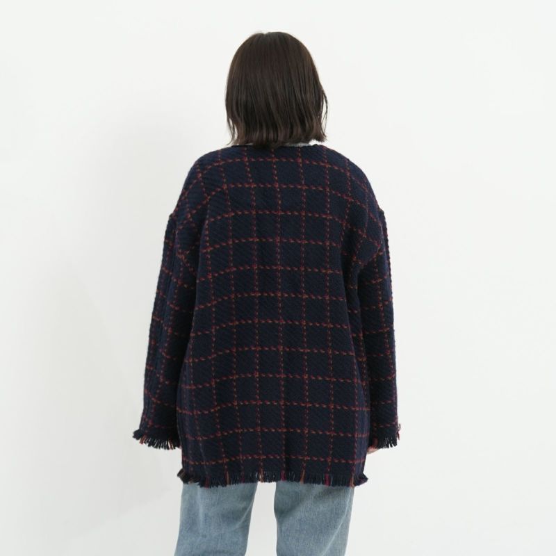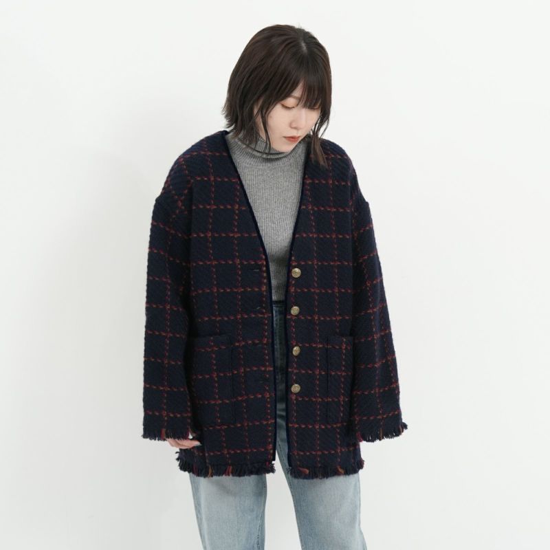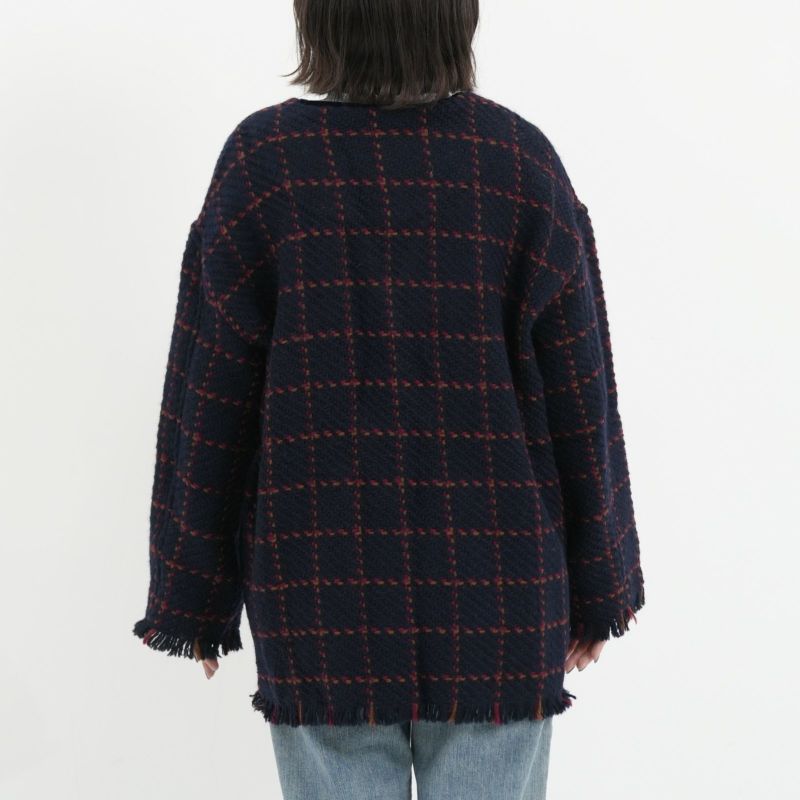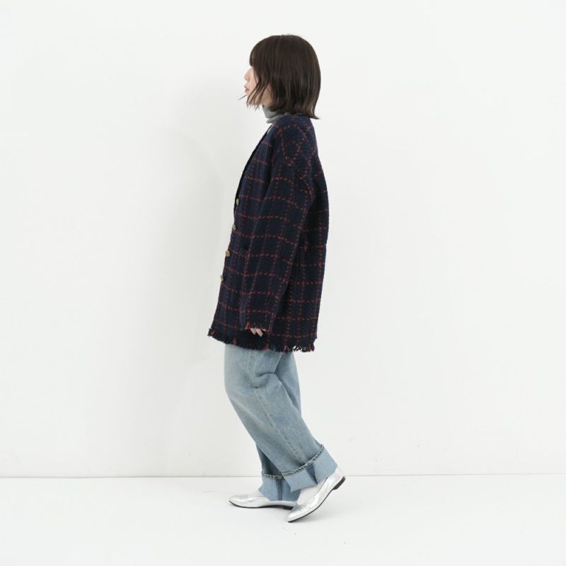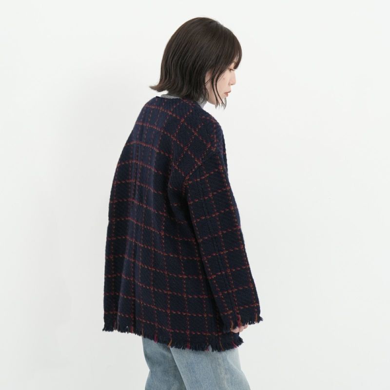 John Branigan(ジョン・ブラニガン) 柔らかいふっくらとした風合いのツイード生地がポイントのノーカラージャケット。 他にはないニットの技術で編み上げられるツイード生地は、軽さと柔らかさが特徴です。 ニット素材なので気軽に羽織りやすく、ウール混で暖かい1枚です。