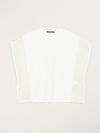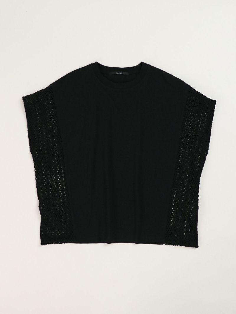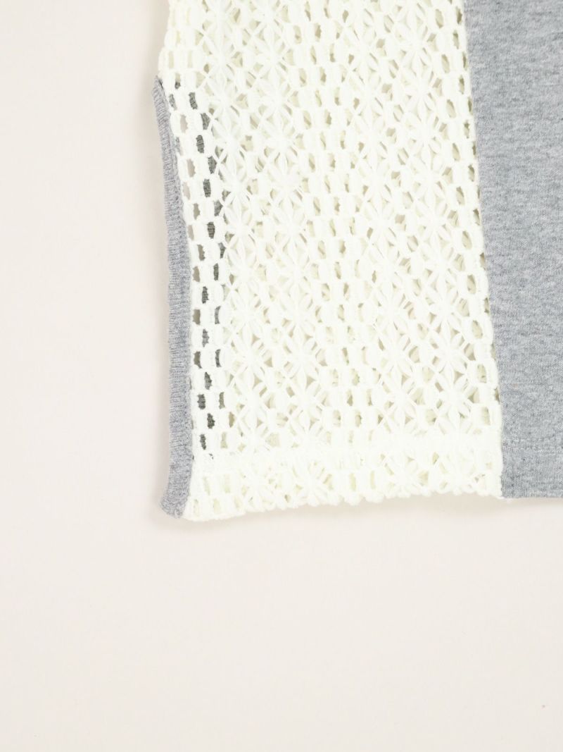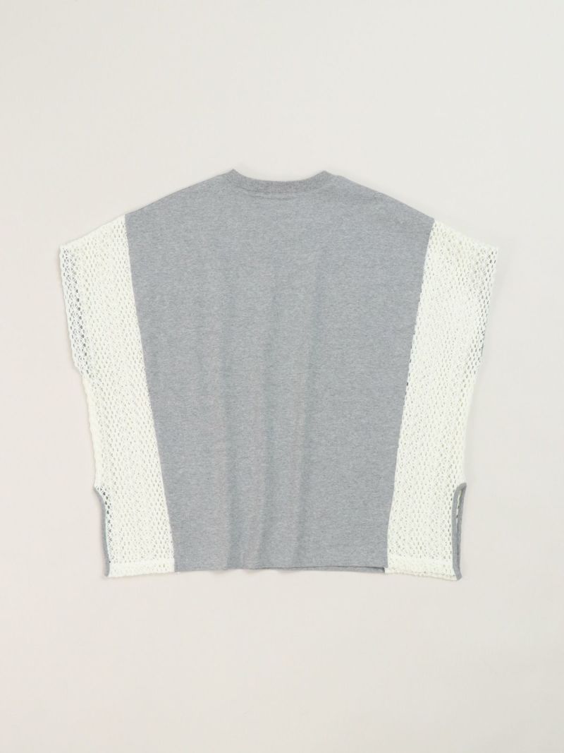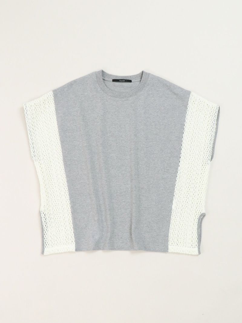 前後差のある丈感がポイントのドッキングTシャツ。 一見シンプルなTシャツですが、センターバックにライン状にシアー素材を切り替えアクセントに。 後ろ裾にはゴムギャザーを施し動きのあるデザインにしています。
