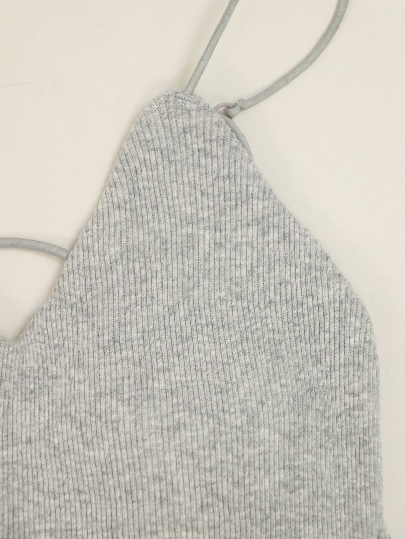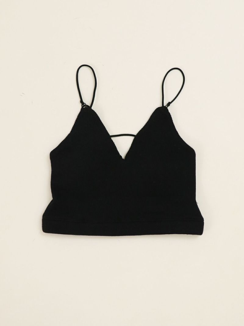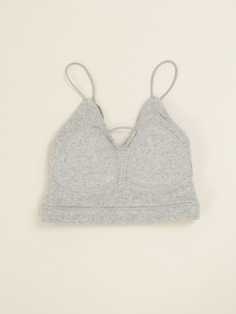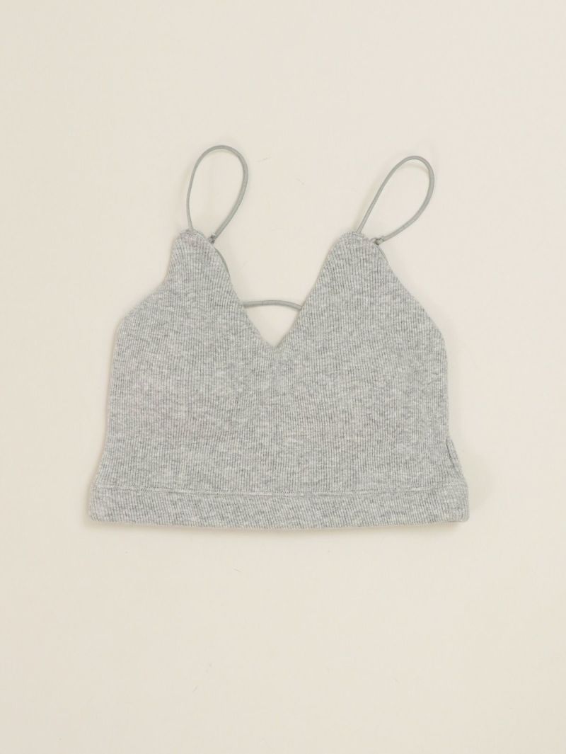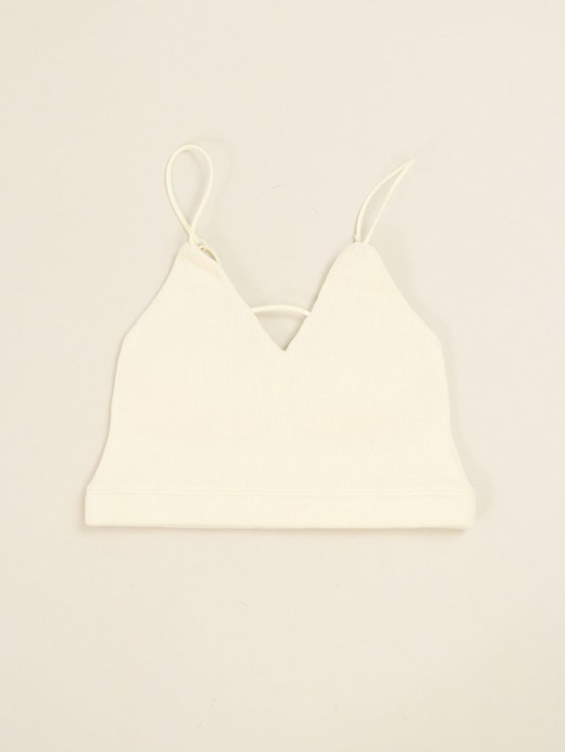 Knuth Marfコラボ、フロントデザインがポイントのブラトップ。 風合いの良い肌触りのやさしいコットン100%のリブ素材を使用。カジュアルになりすぎない細めのストラップと大きくあいた背中のデザインが特徴です。縫い付けタイプの三角形のパットでホールド感もしっかりとあり、スッキリとしたシルエットでご着用いただけます。