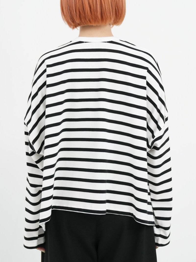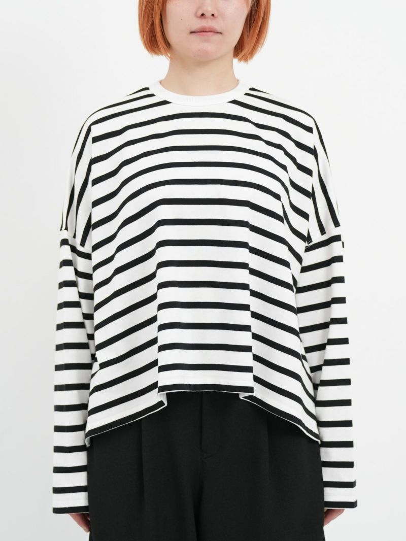 定番のボーダーカットソー。 コンパクトな丈感とゆとりのあるシルエットでトレンド感を加えました。春らしさを感じるカラーの3色展開です。