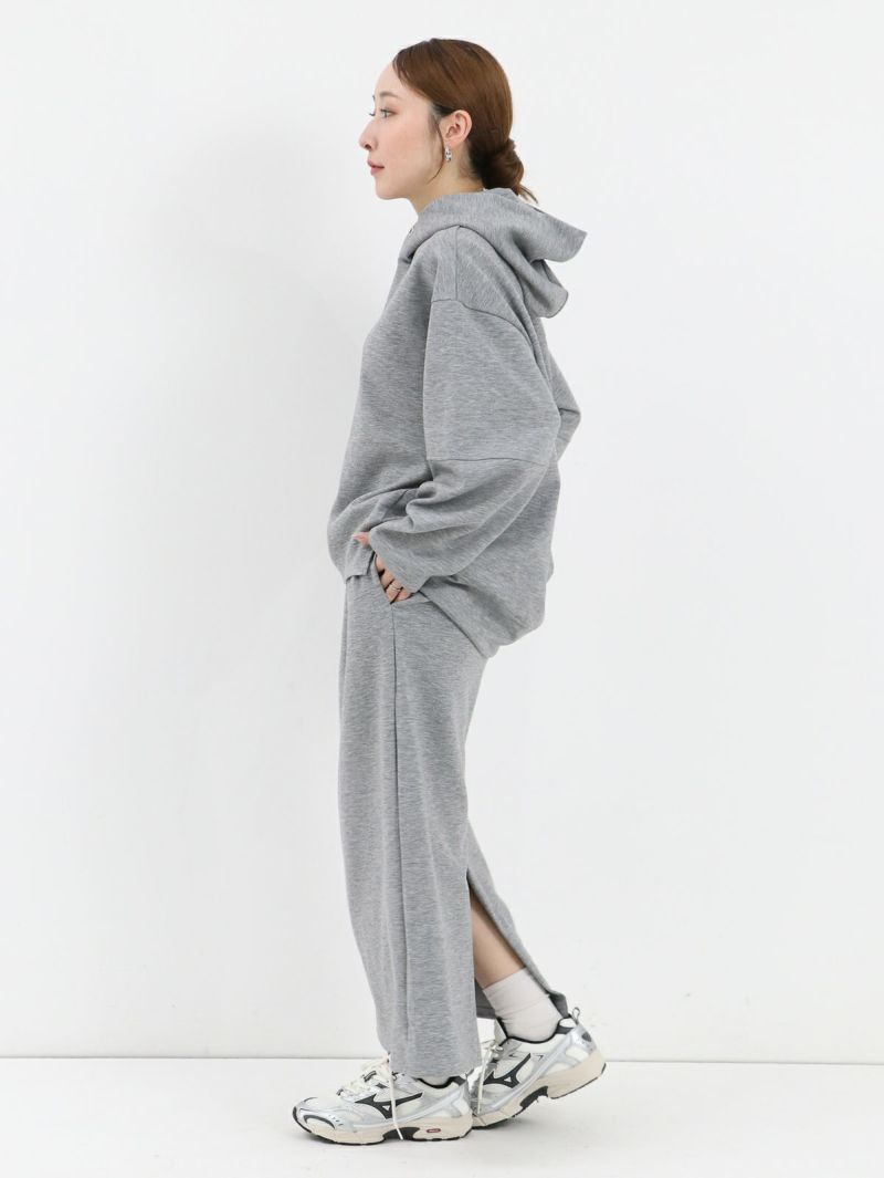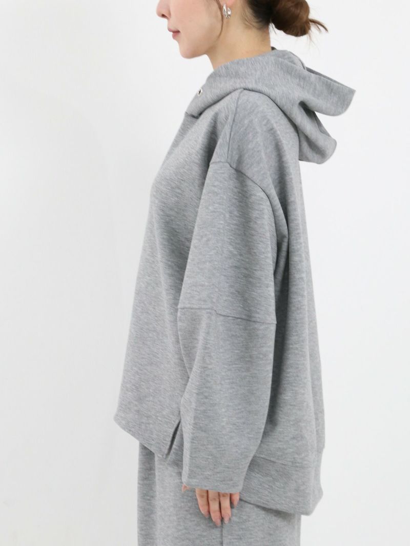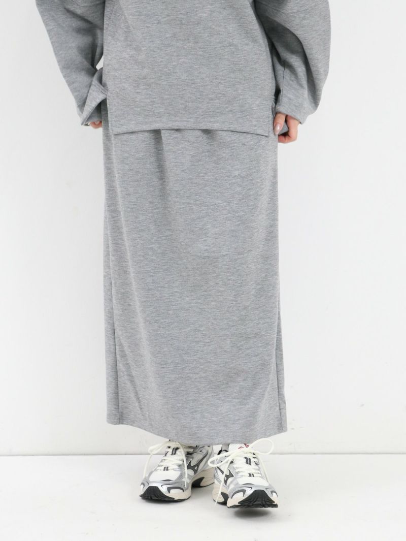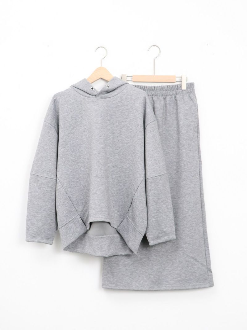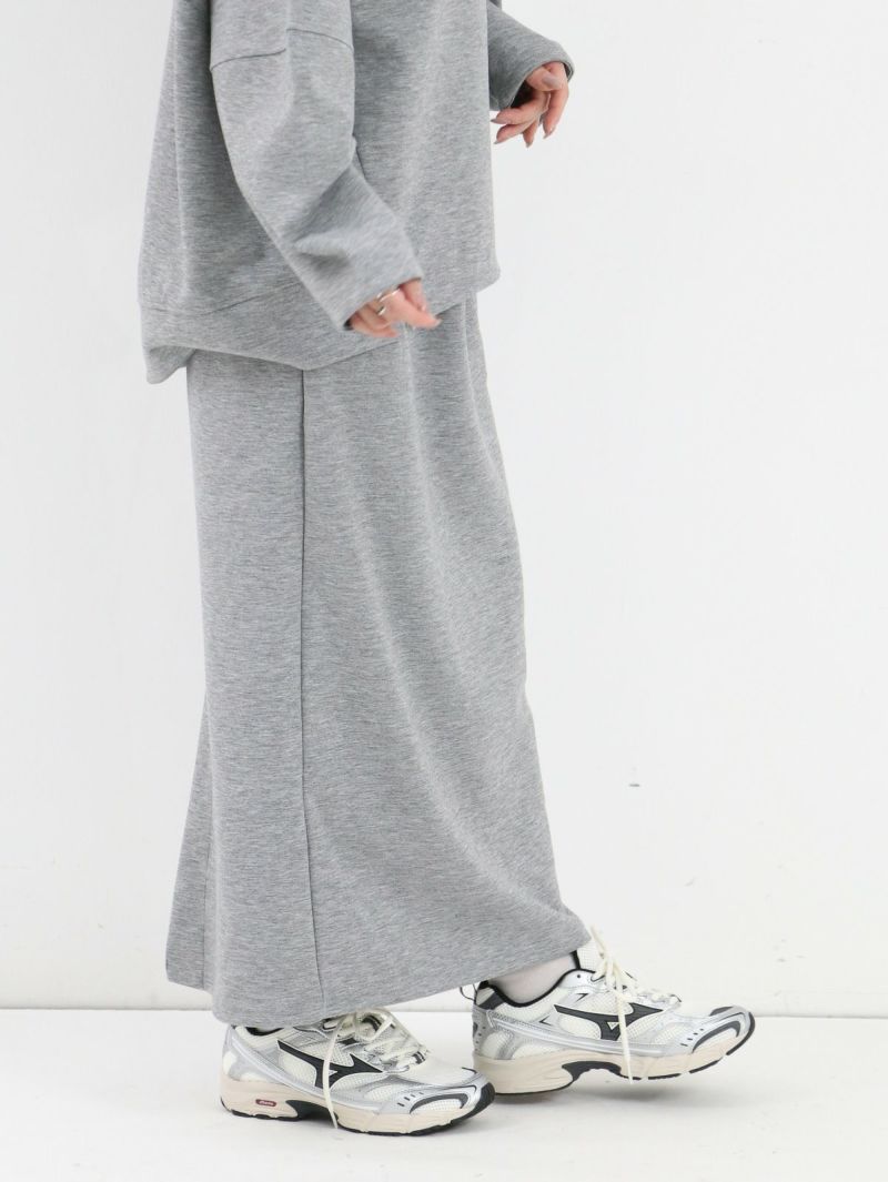 立体感とハリのある風合いが特徴のダンボールニット素材を使用した、フーディーとスカートのセットアップ。軽やかでシワにもなりにくくストレッチ性もあるため日常使いにもおすすめです。