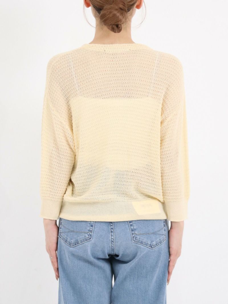 繊細な凹凸感がポイントになる編地の七分丈カーディガン。