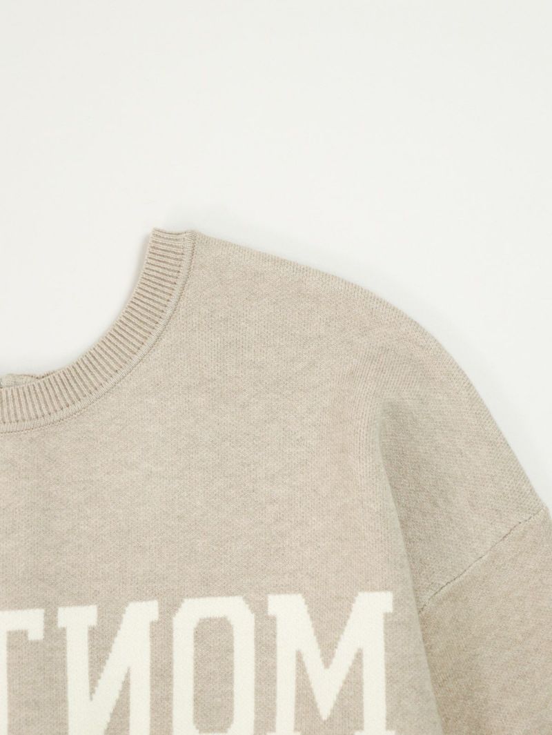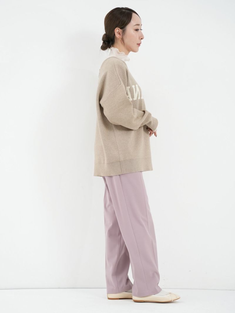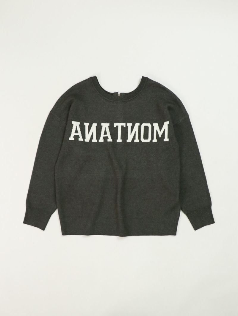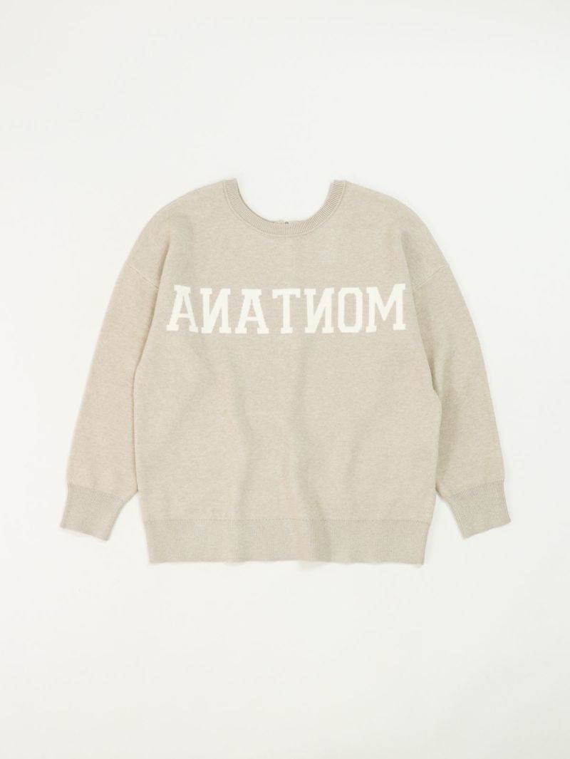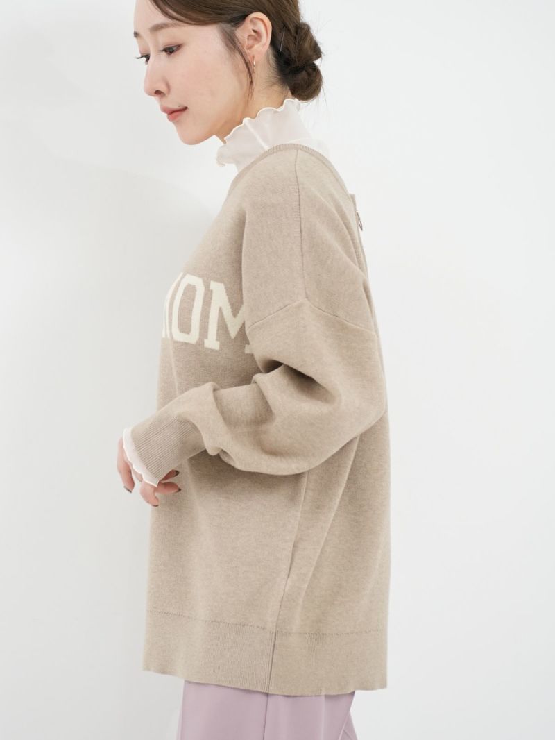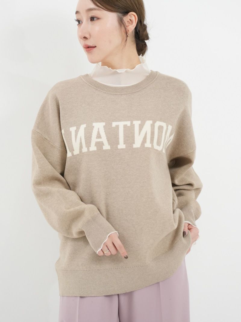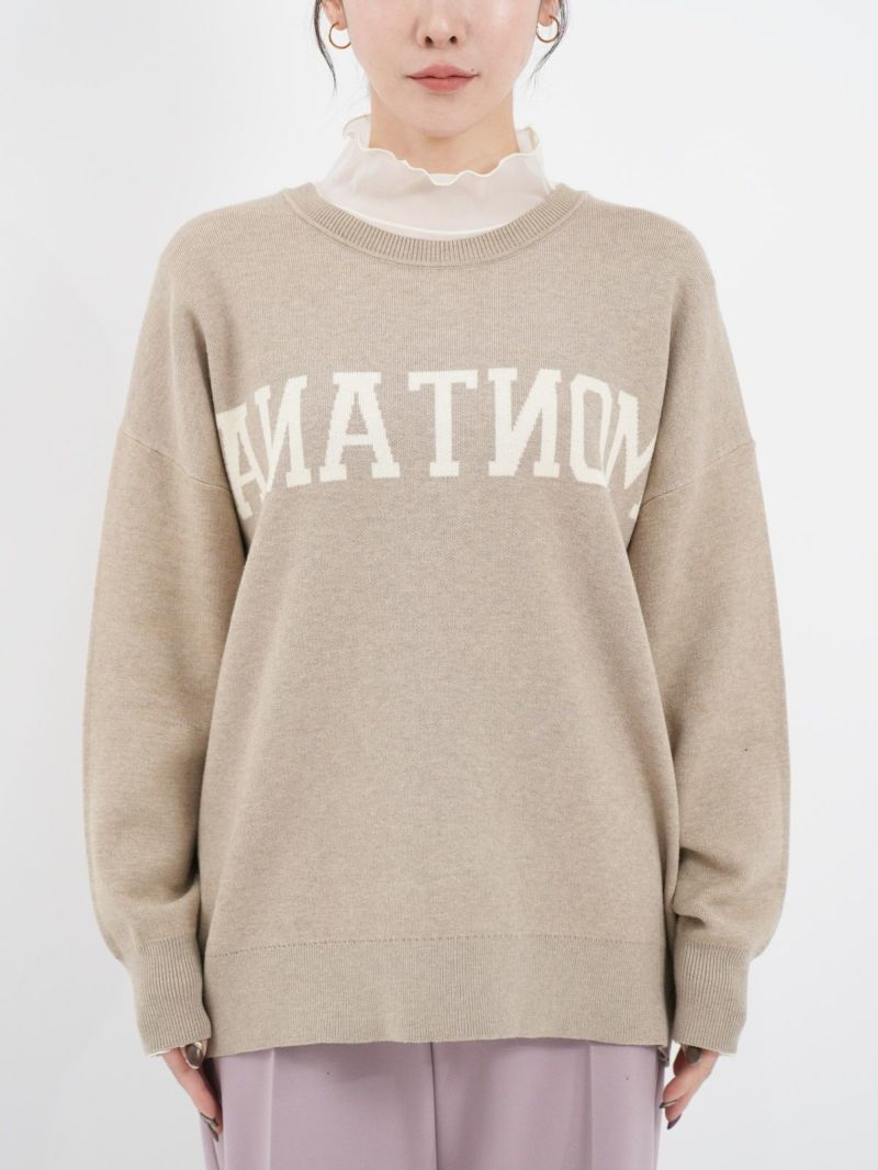 前後2WAYで着られるロゴニット。 鏡あわせに反転したロゴがアクセントになったキャッチーな一枚です。スウェットのように柔らかく、チクチク感が苦手な方にも着やすい素材感。ゆったりとしたシルエットで、リラクシーな雰囲気のスタイリングが楽しめます。