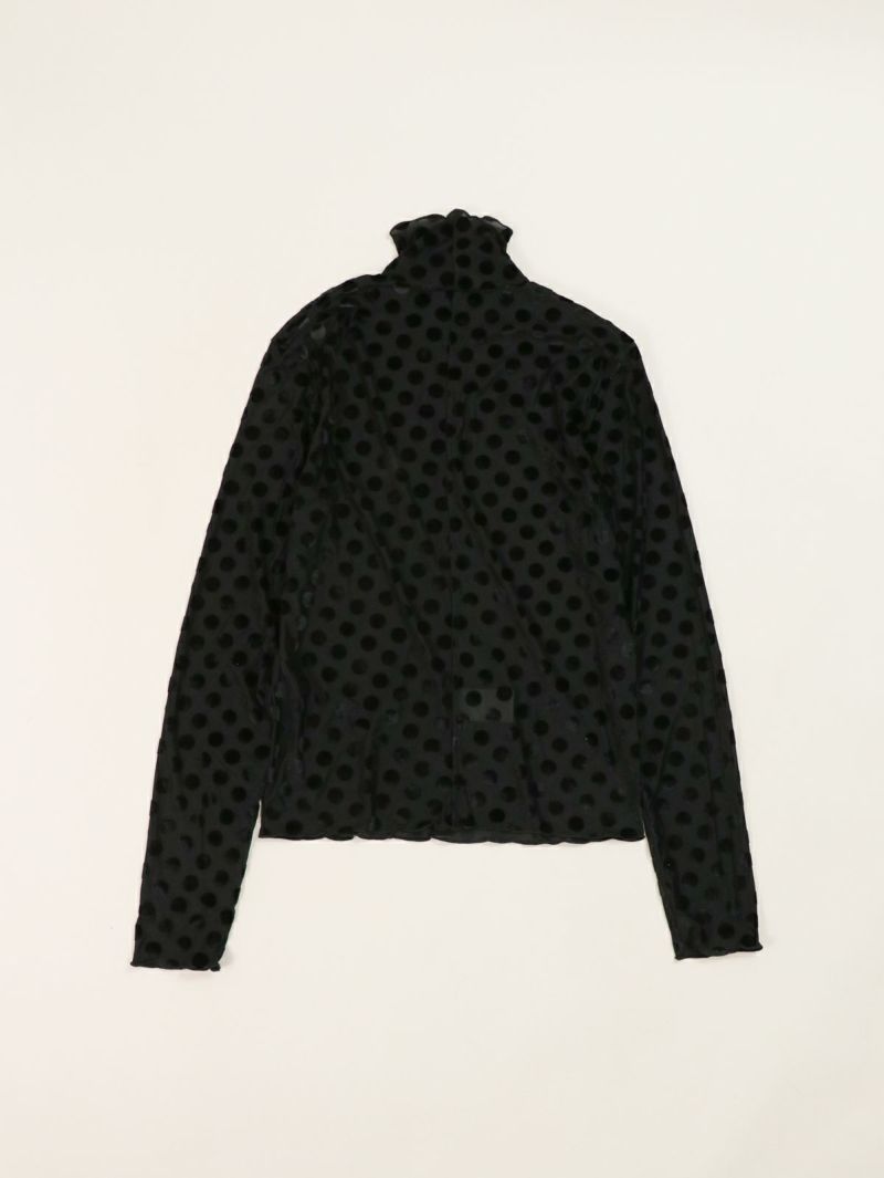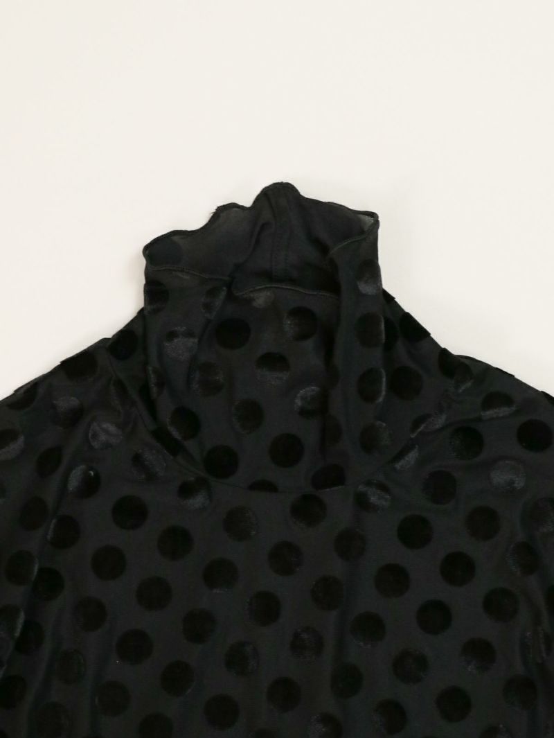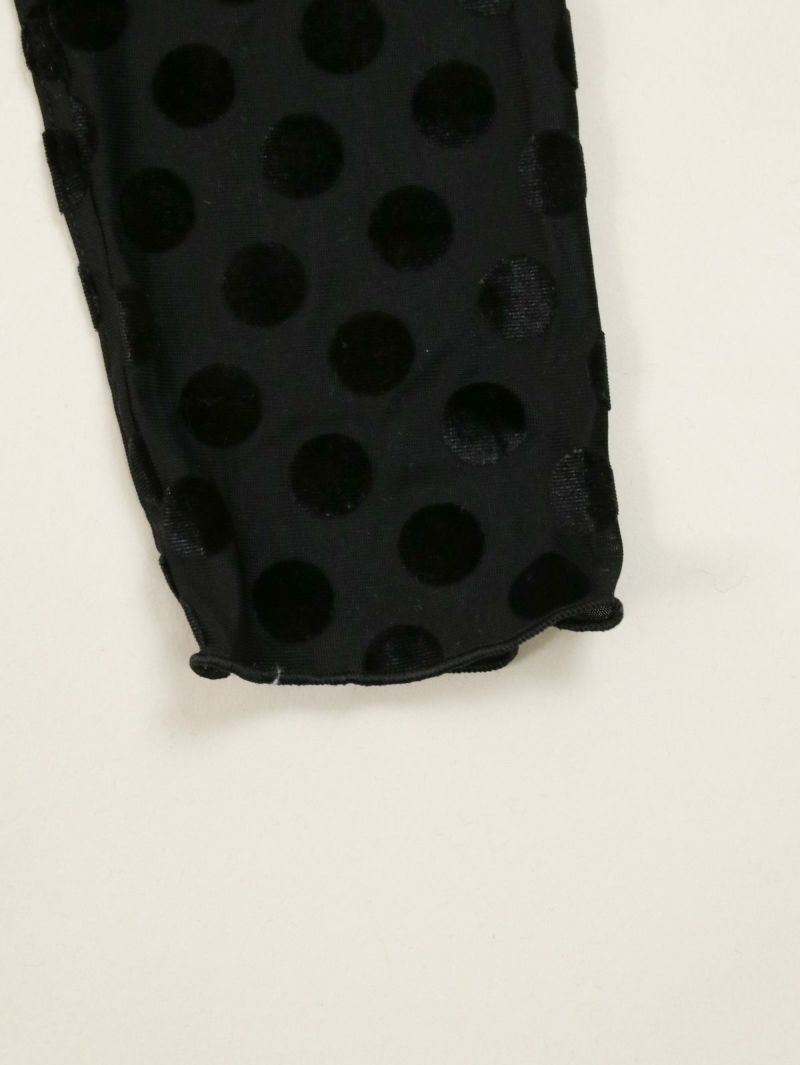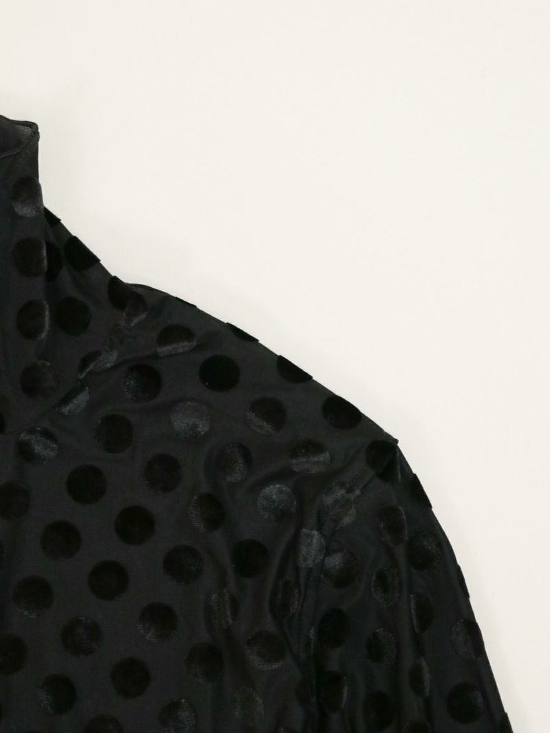 ドットのシースルーインナー。 微光沢のドットを施した生地は1枚で大人モードな雰囲気が漂います。ジャケットを合わせたり、デニムを合わせたり、いつもの無地インナーに変わって取り入れるだけで新鮮なアイテム。ほどよい透け感がとても可愛いのでお勧めです。