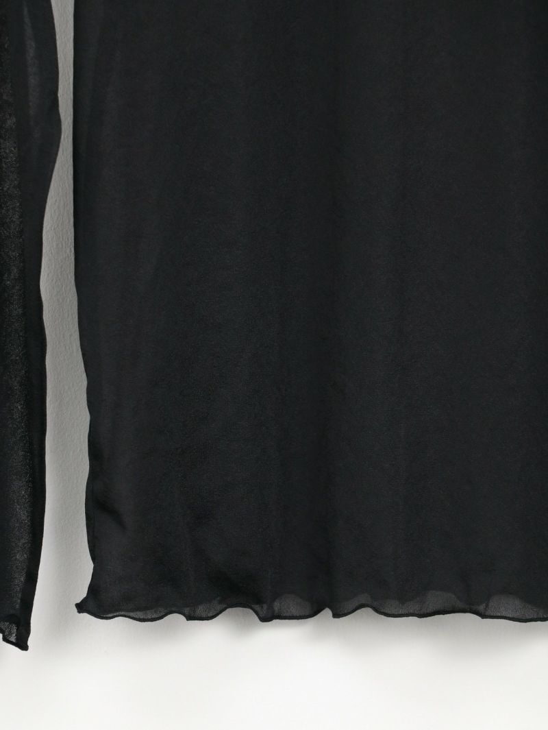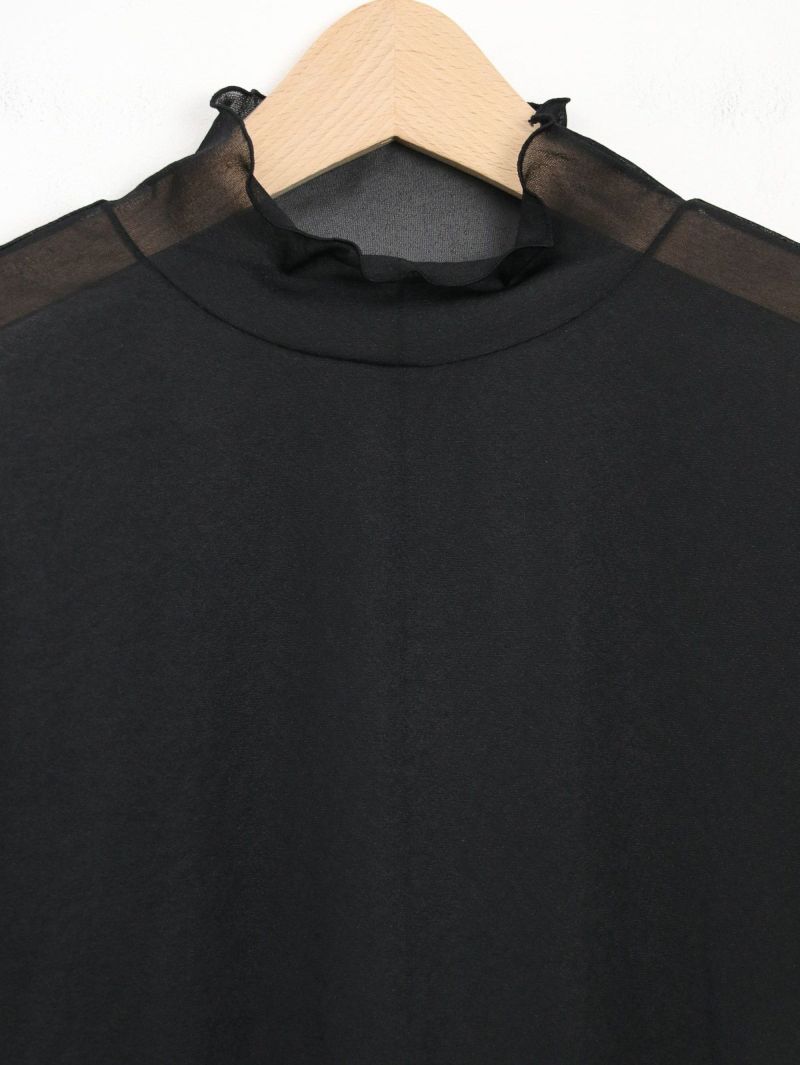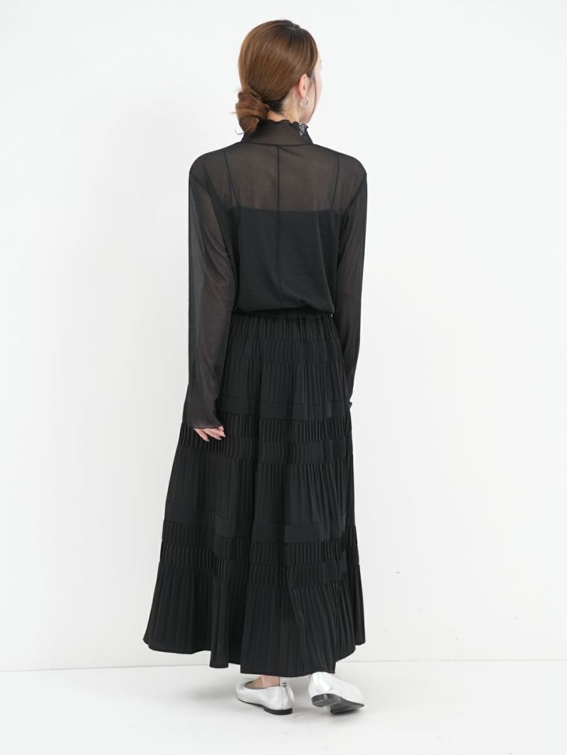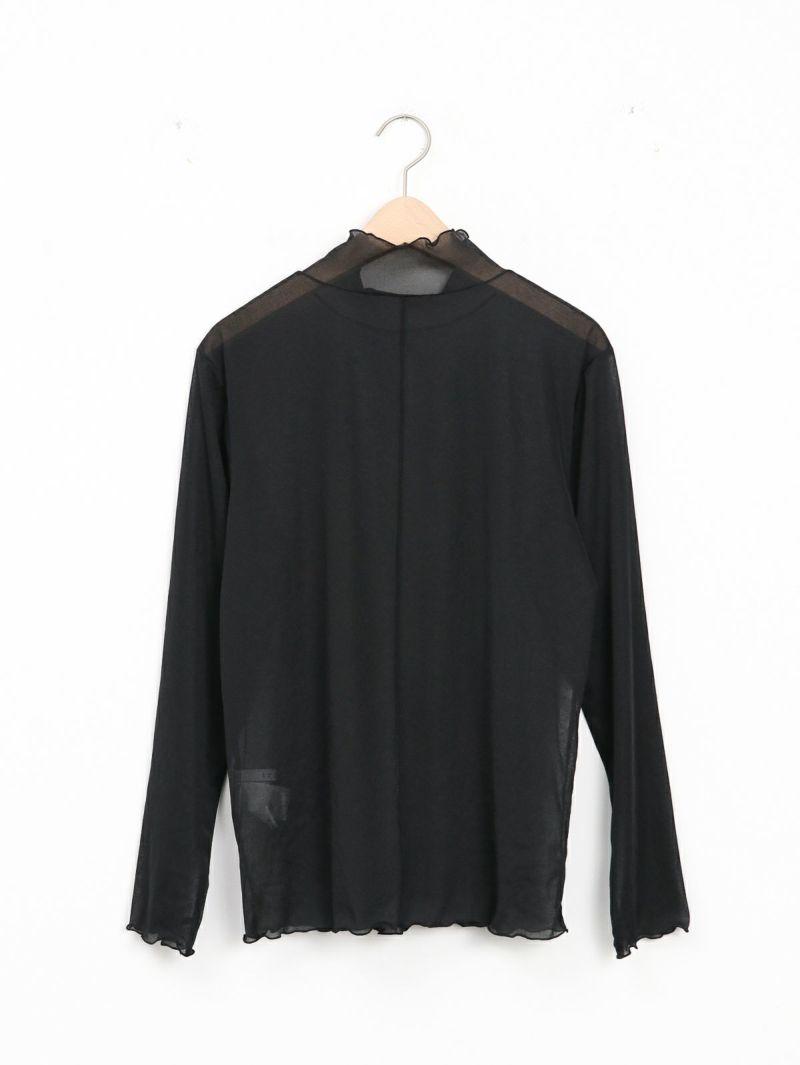 軽やかな透け感が魅力のトリコットシフォン素材を使用したハイネックトップス。 窮屈感のないストレスフリーな着心地なので、程よい透け感がスタイリングに抜け感を与え、キャミソールやワンピースとのレイヤードスタイルにぴったり。 インナーとしてもメイントップスとしても活躍し、シーズンレスで使える万能アイテムです。