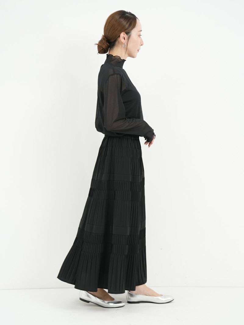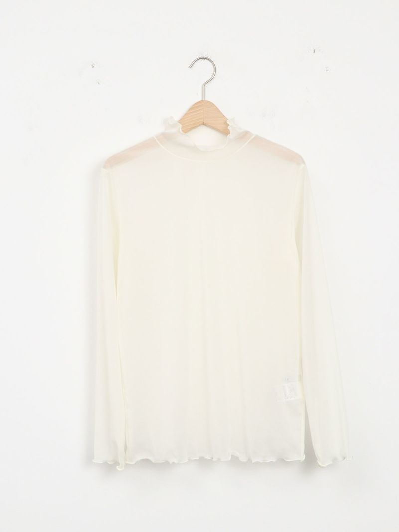 軽やかな透け感が魅力のトリコットシフォン素材を使用したハイネックトップス。 窮屈感のないストレスフリーな着心地なので、程よい透け感がスタイリングに抜け感を与え、キャミソールやワンピースとのレイヤードスタイルにぴったり。 インナーとしてもメイントップスとしても活躍し、シーズンレスで使える万能アイテムです。