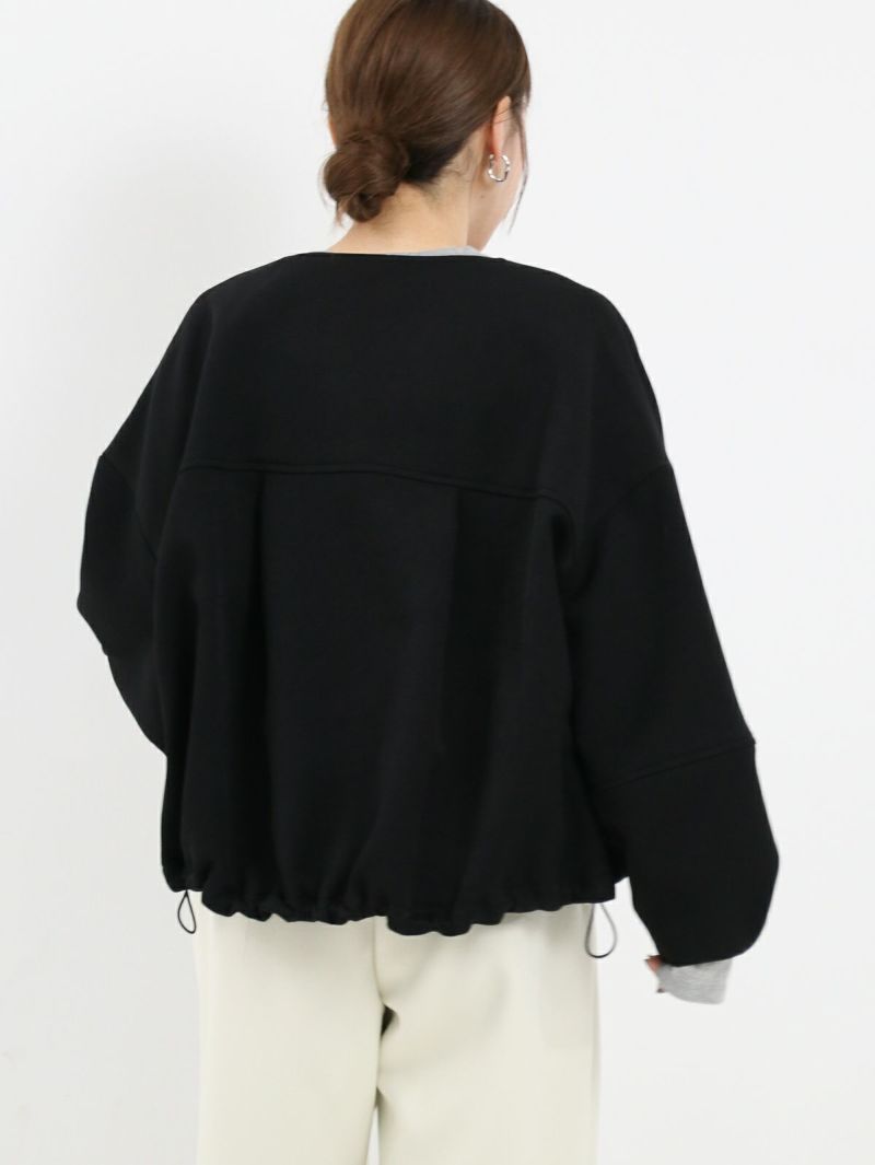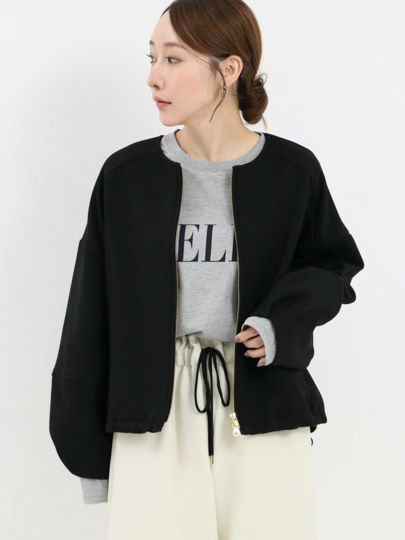 赤外線を効率よく熱に変更することのできるウォーム素材、ナノヒーティングを使用した新素材。ラウンドネックのノーカラーデザインとフロントジップで顔まわりがスッキリ見えます、程良くゆとりのあるボックスシルエットは、ニットやスウェットの上からでも着用しやすいこれからの時期に万能なアウターです。