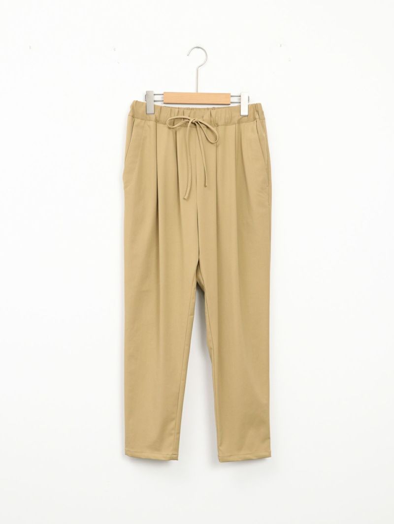 腰回りにタックでゆとりを持たせ、足首にかけてはタイトなラインに馴染むように仕上げたルーズテーパードパンツ。